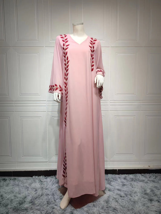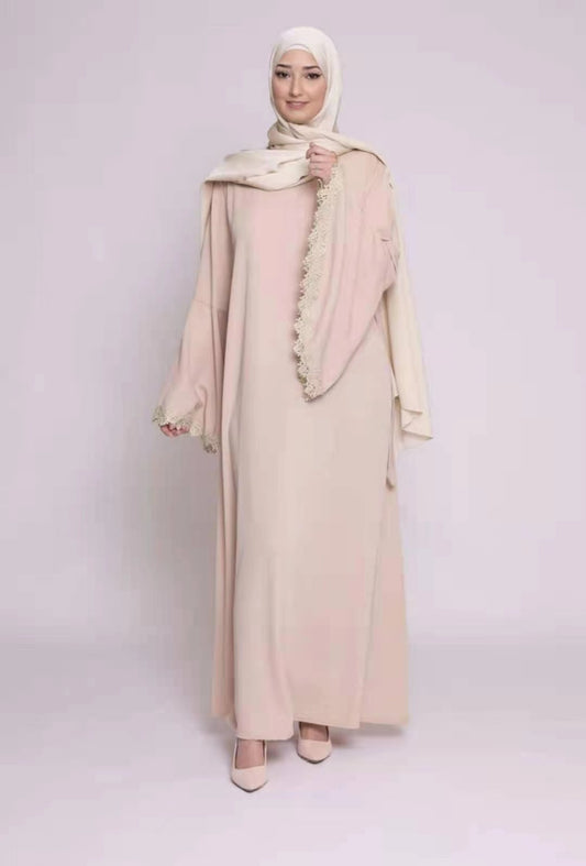 MS261 # فستان إسلامي بحاشية كبيرة بلون خالص