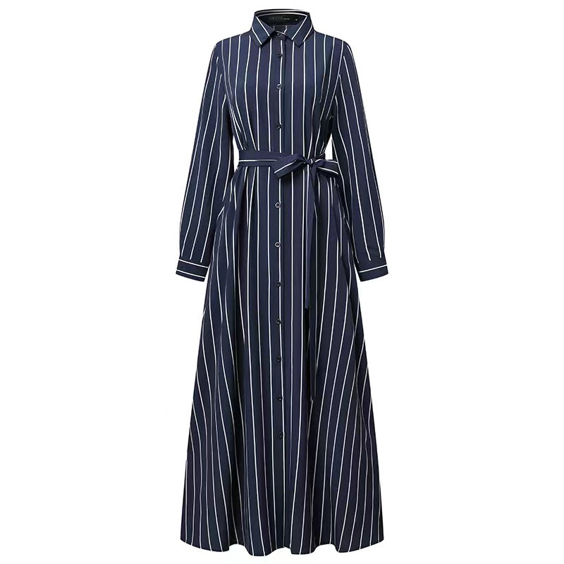 MS256#Muslim Women's Casual Stripe Shirt Dress