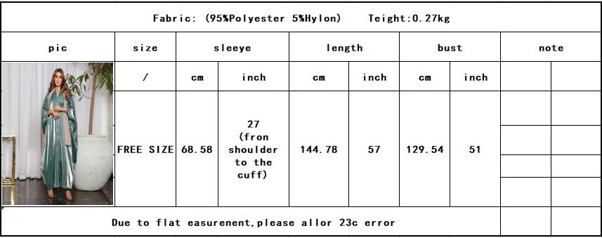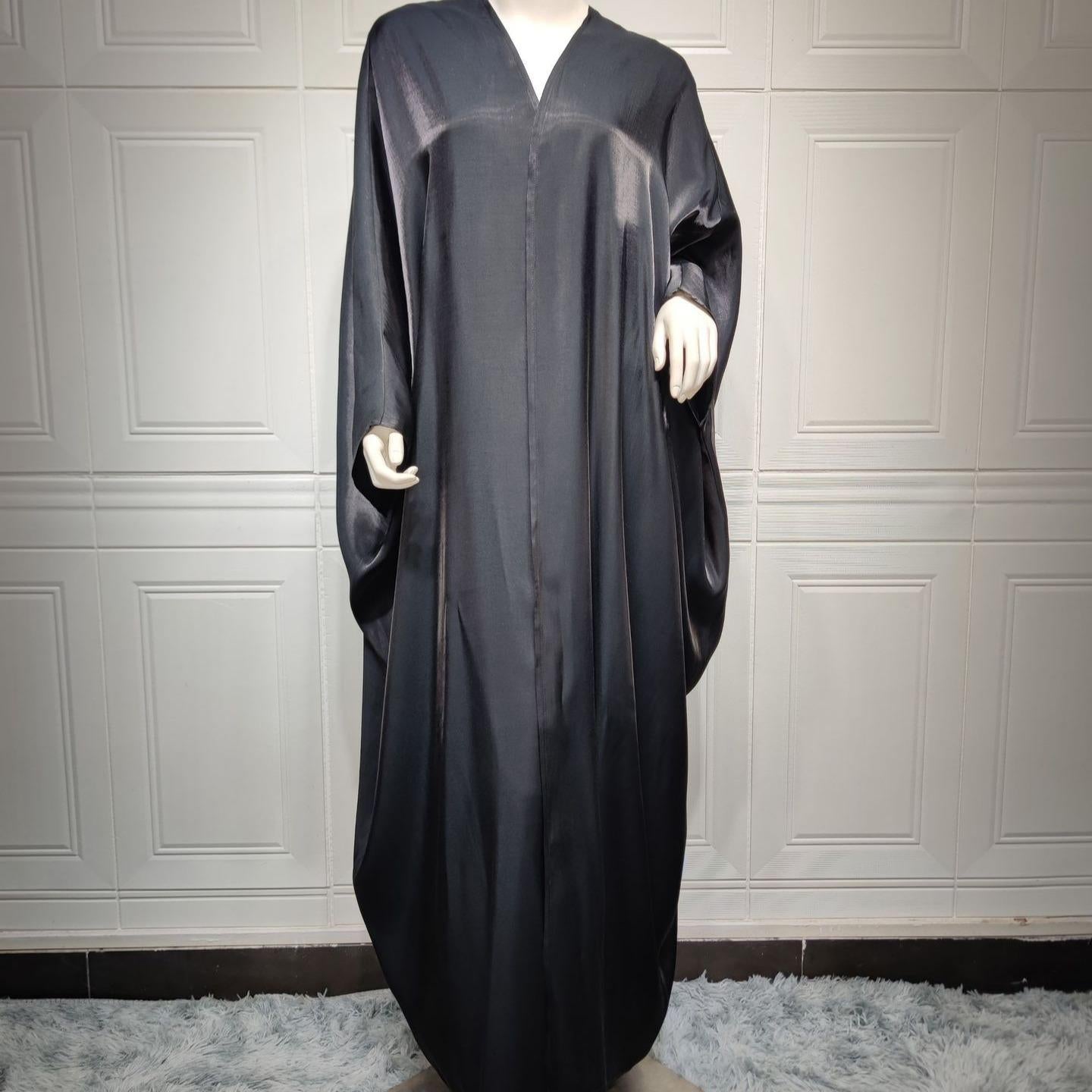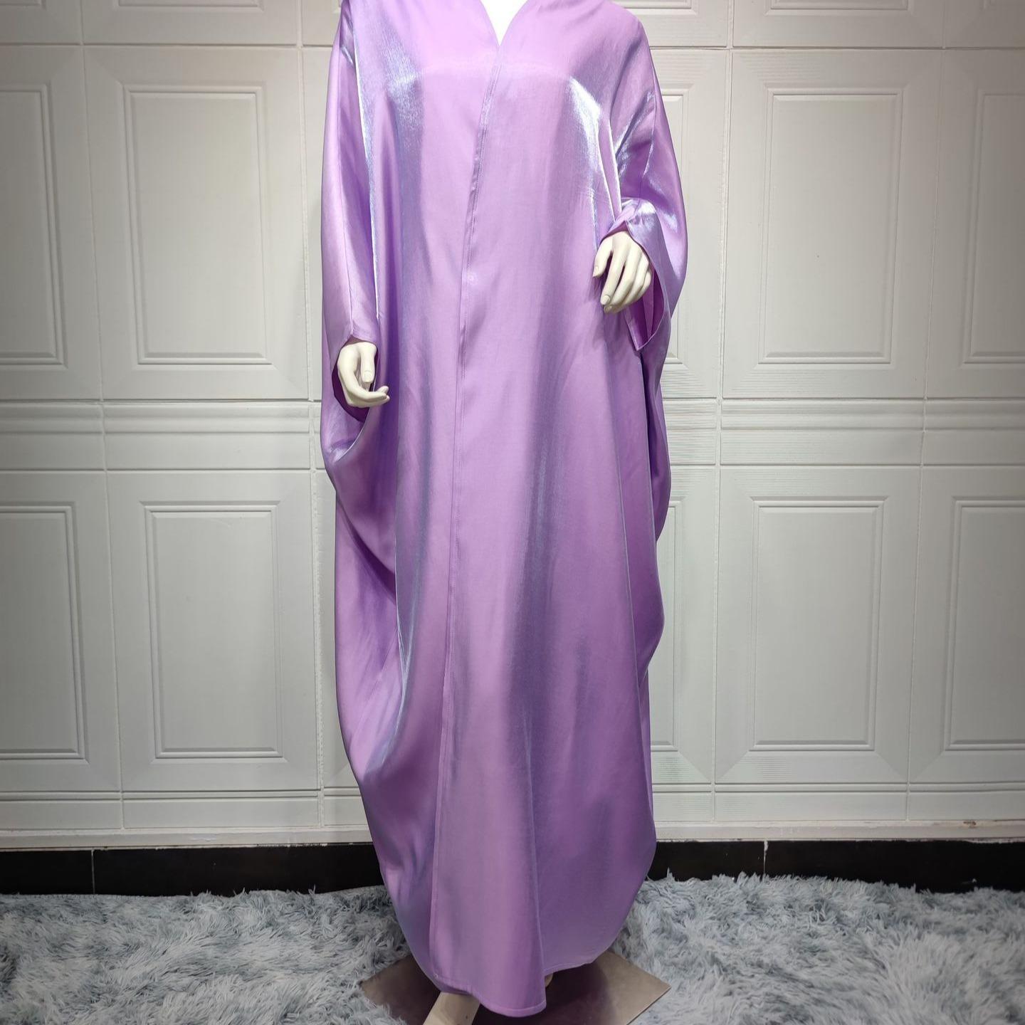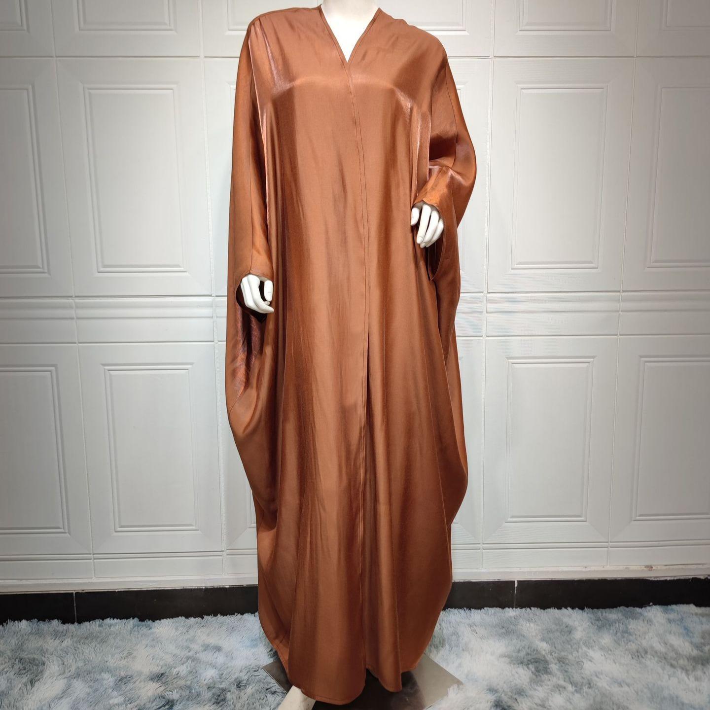 MS303# Muslim fashion bright silk Satin solid color Batsleeve robe European and American plus size women's wear