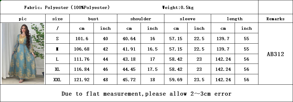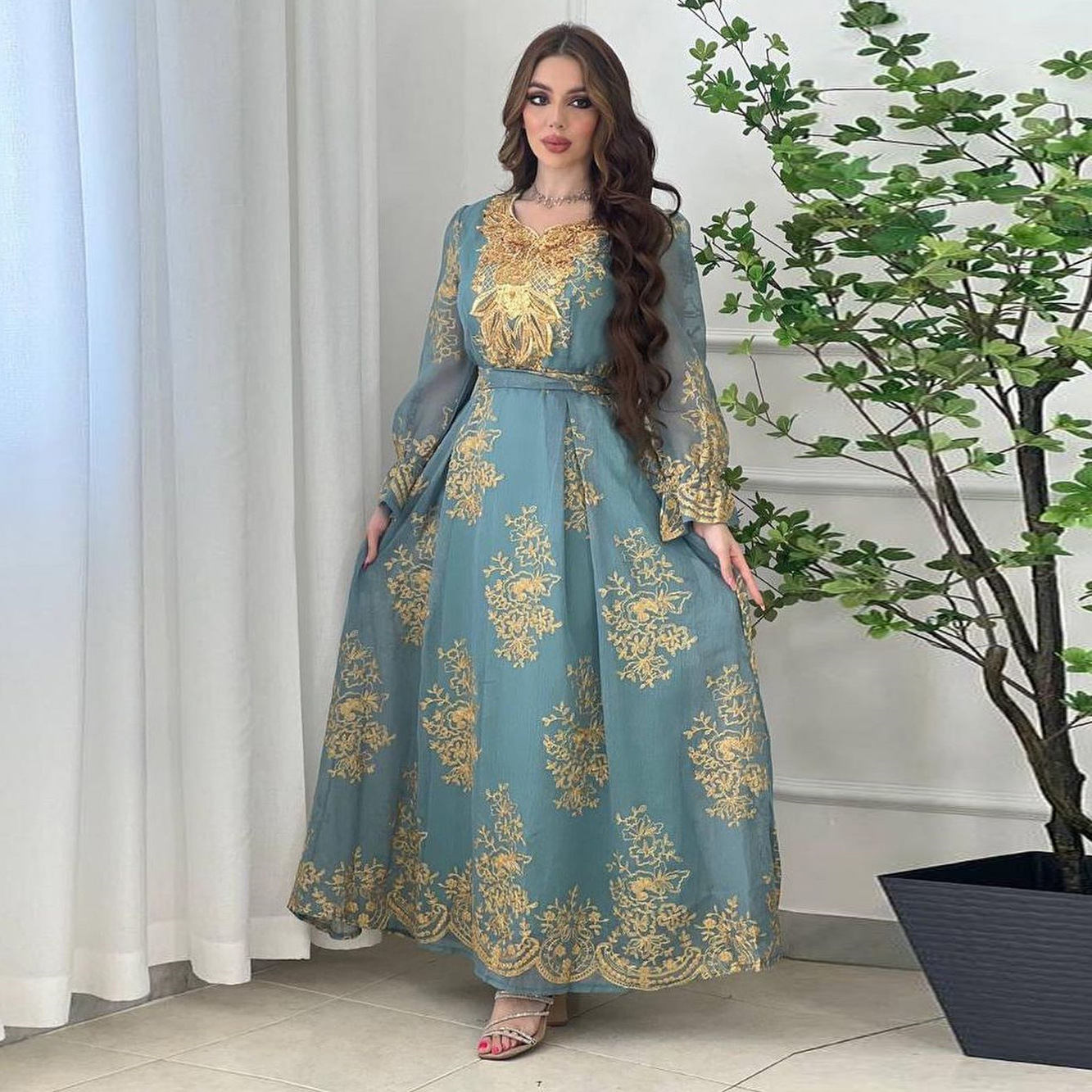 MS315#Embroidered Dress Muslim Party Dinner Robe