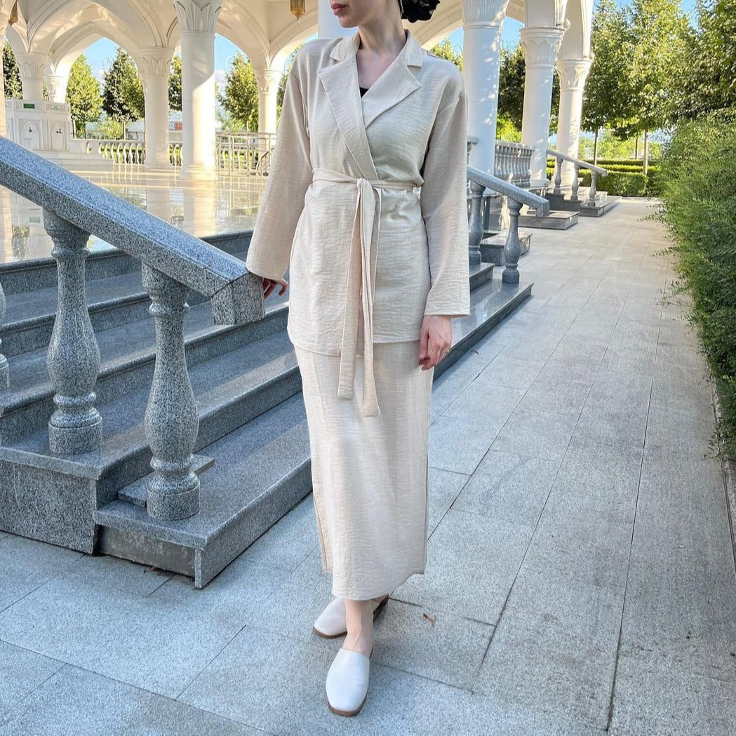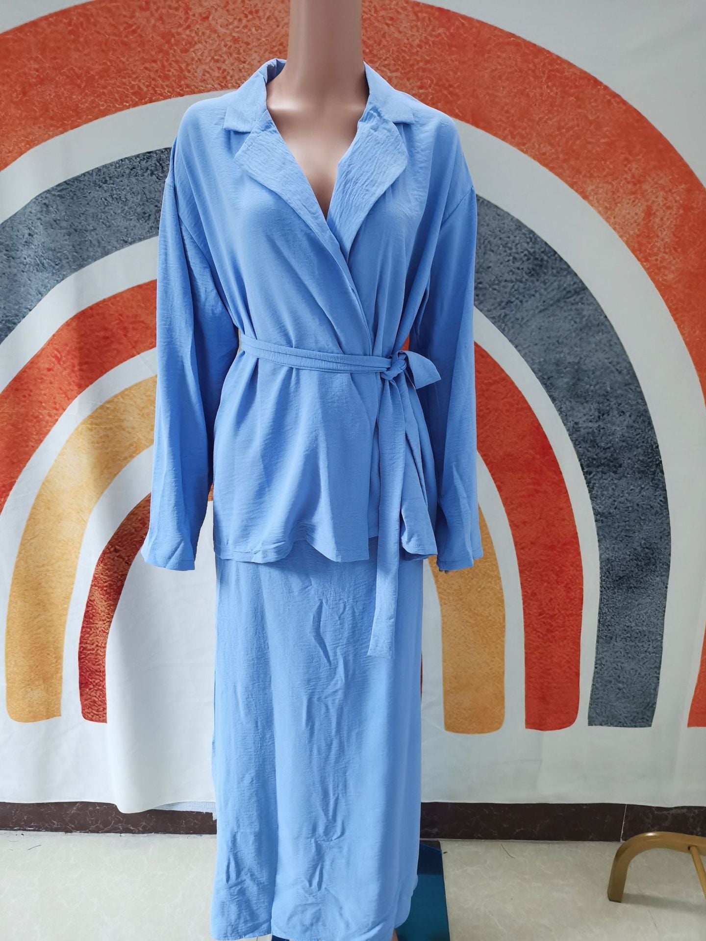 MS464#Long sleeve lace-up shirt cardigan skirt suit