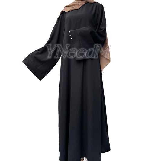 MS428#Abaya musulmana con manga larga y túnica tipo cárdigan de color sólido (SIN vestido interior)