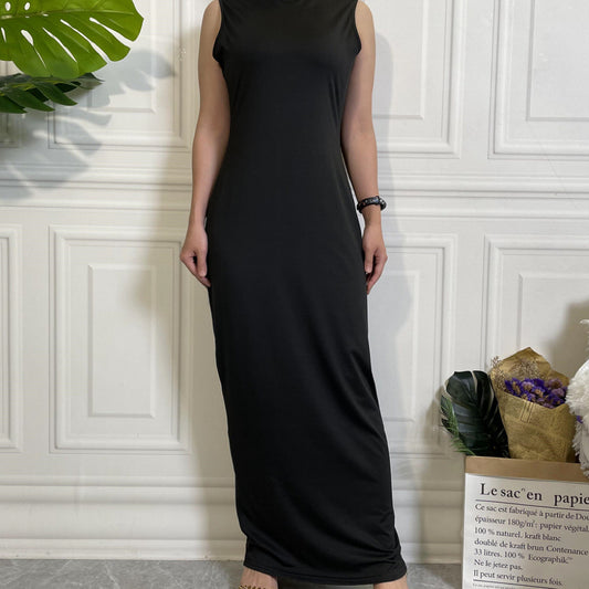MS312#Vestido interior modesto sin mangas con bolsillos