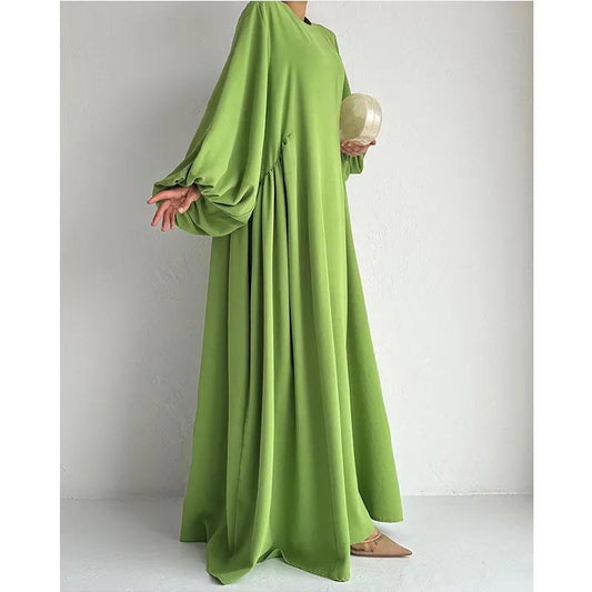 MS472#Vestido ajustado de corte A con mangas abullonadas y temperamento, falda larga