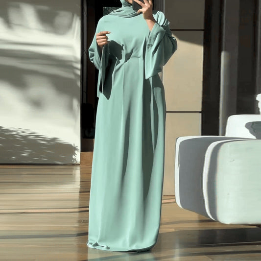 MS467#Vestido musulmán sencillo de color liso para mujer