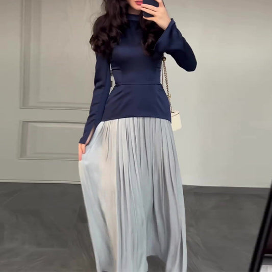MS455#Vestido nuevo de primavera para mujer con falda larga plisada y viento ligero
