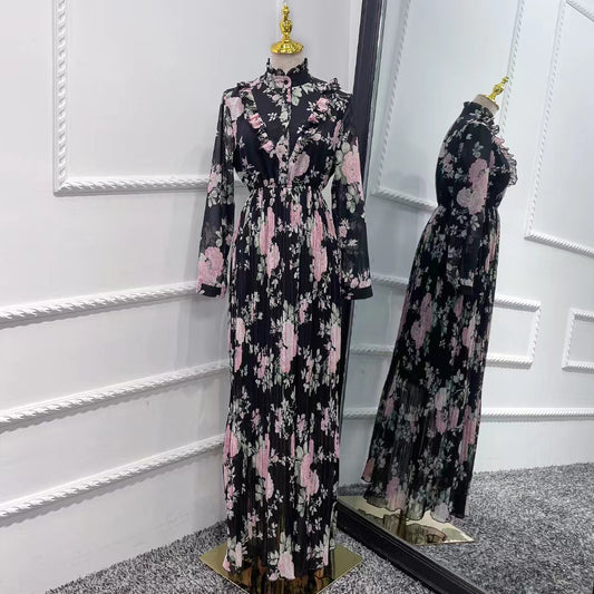 MS232#Vestido floral con cuentas estilo musulmán