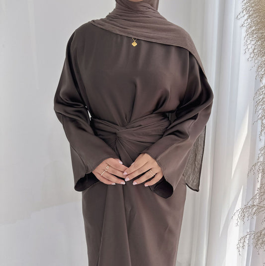 MS321# Abaya musulmana de color bronce con mangas anchas