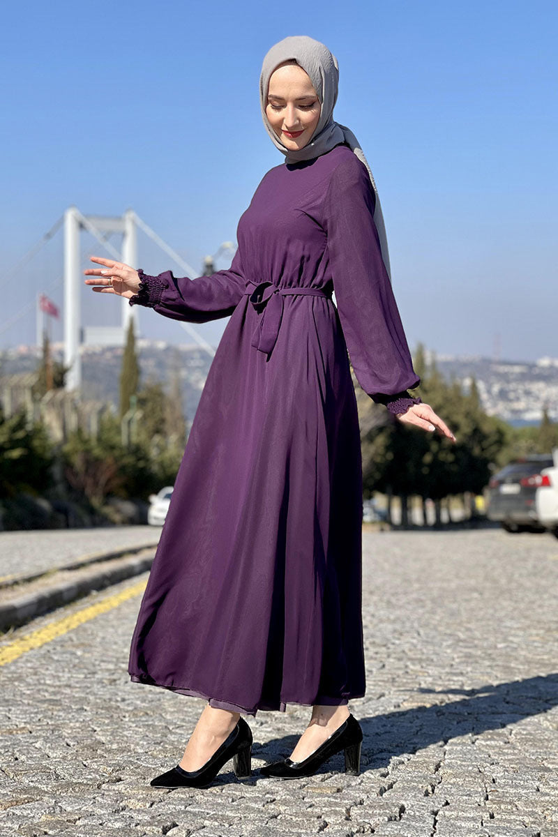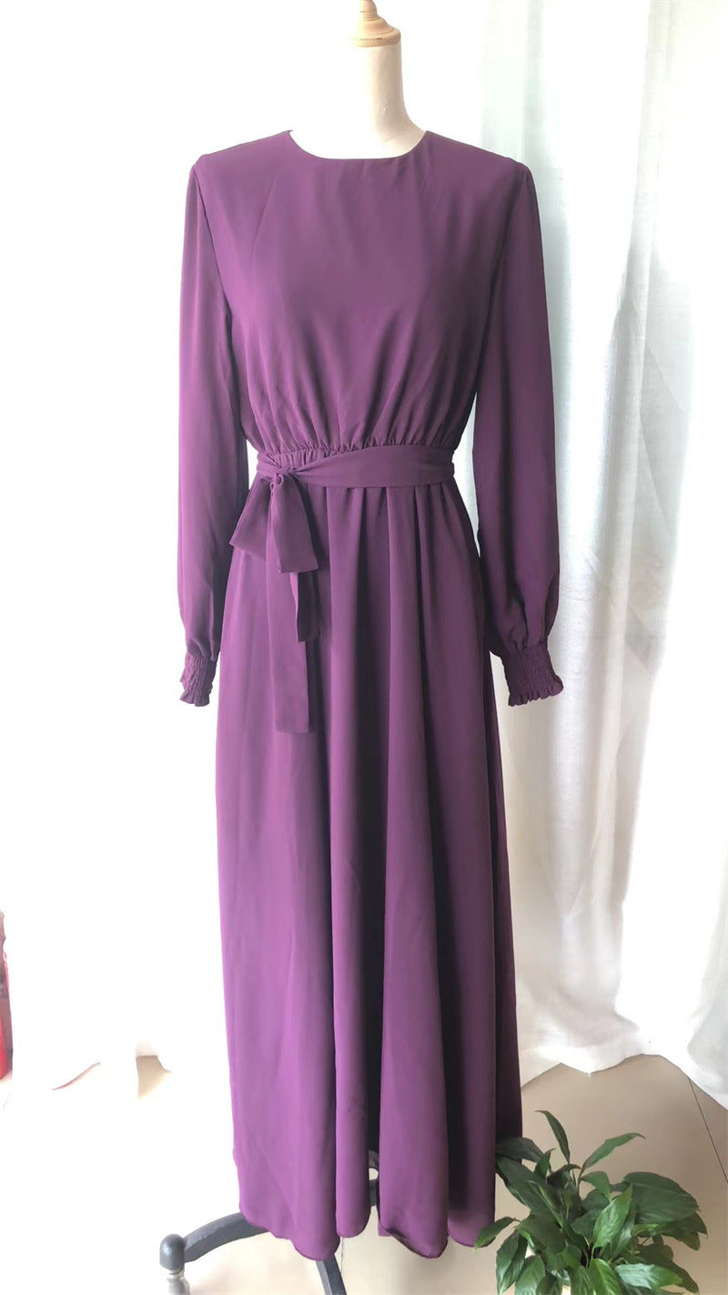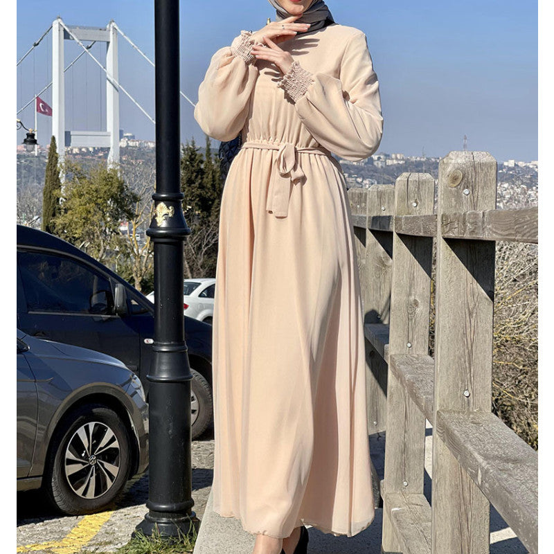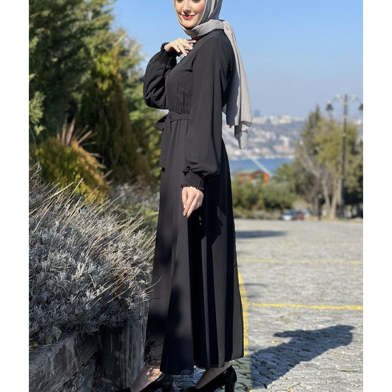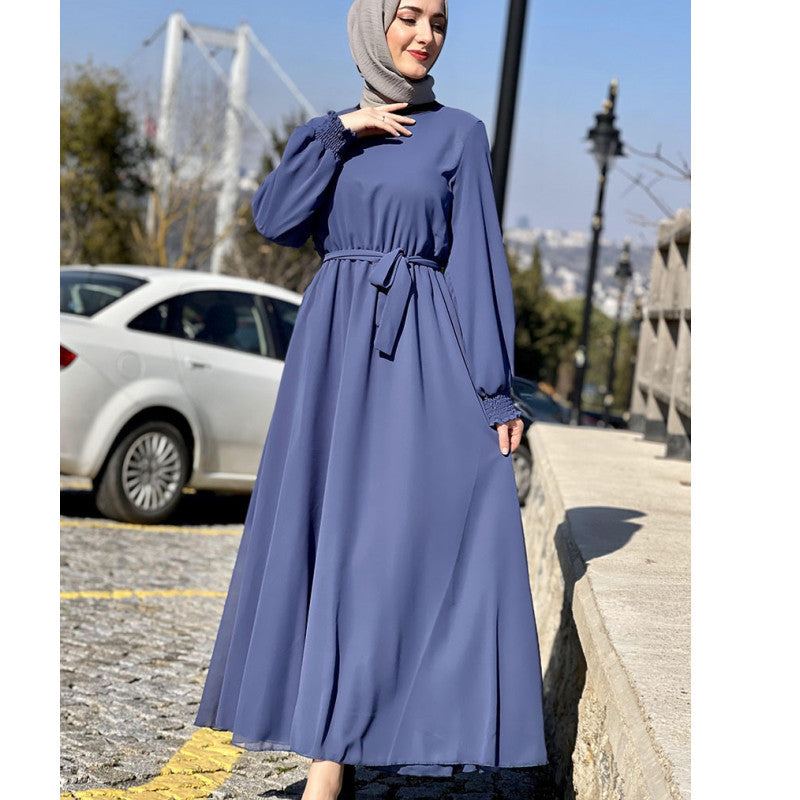 MS500#Abaya de color sólido, moda, temperamento, con cordones, vestido largo de gasa para mujer, talla uniforme