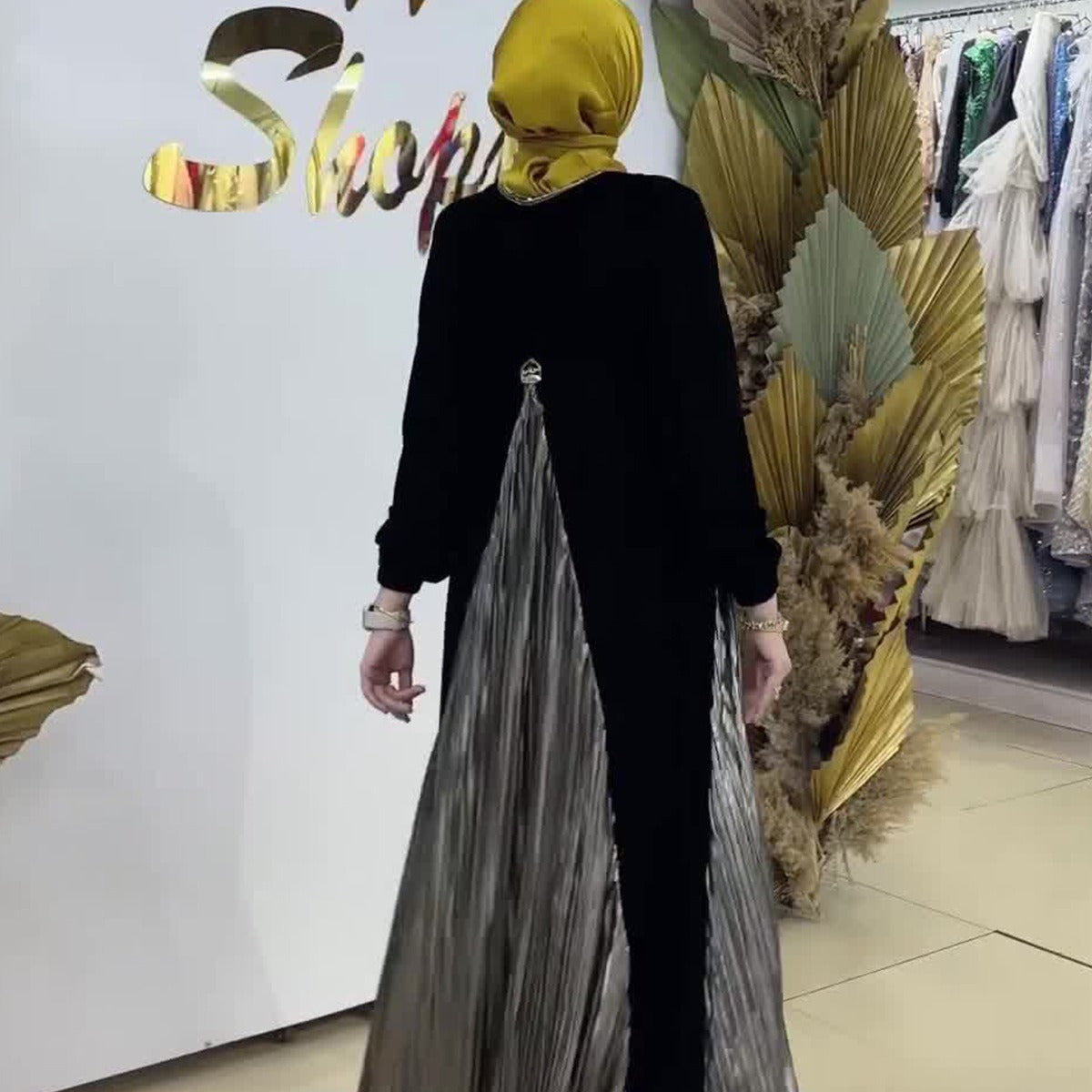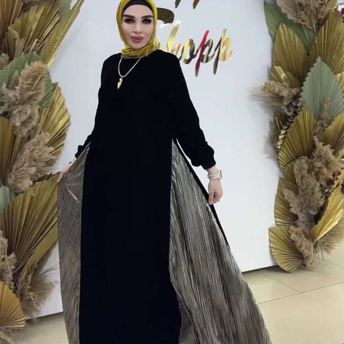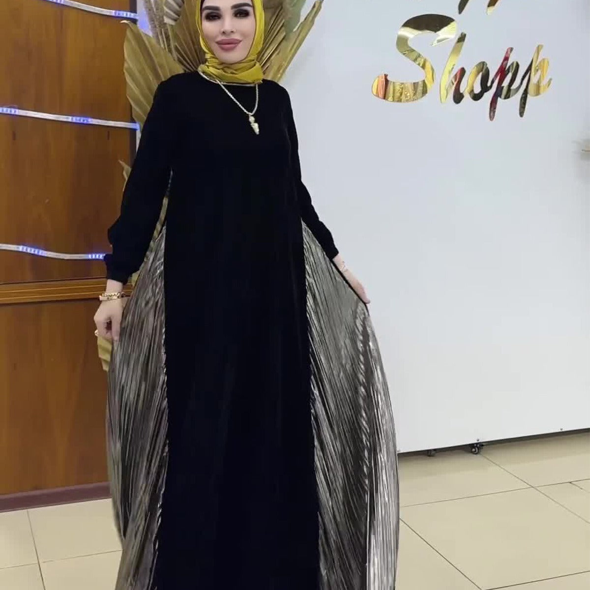 MS412#Falda larga de color en contraste con costuras bronceadas plegables