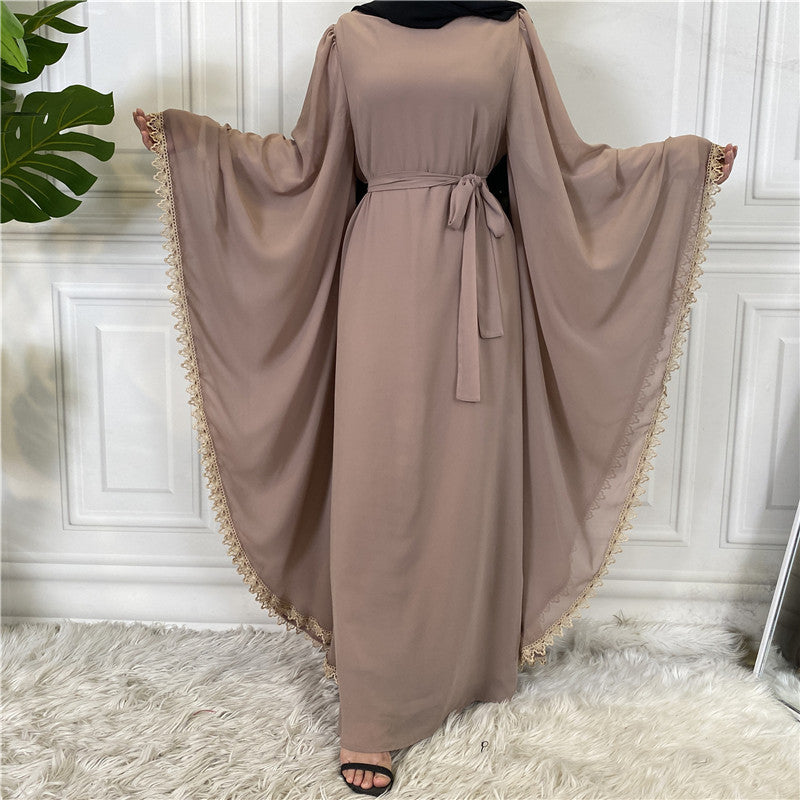 Bata de manga larga con encaje y retazos sueltos MS027# para mujer