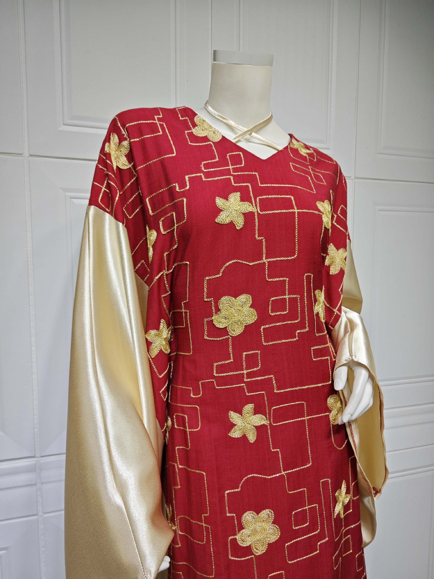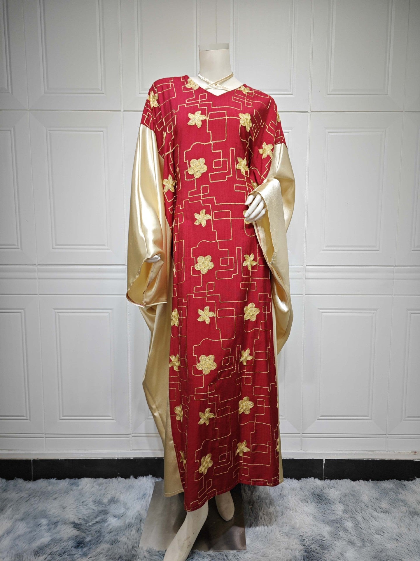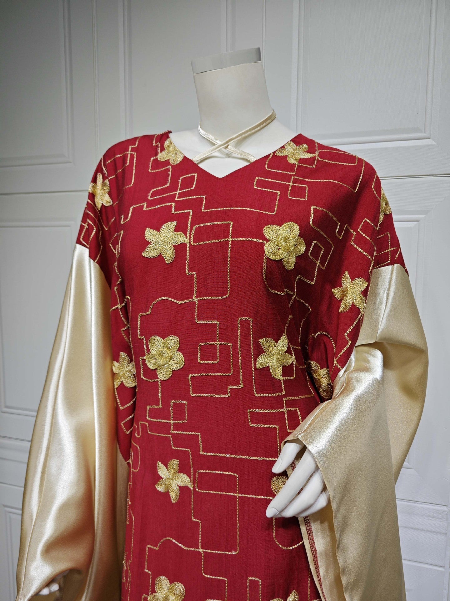 Vestido de bloque de color bordado para mujer musulmana de Dubai árabe