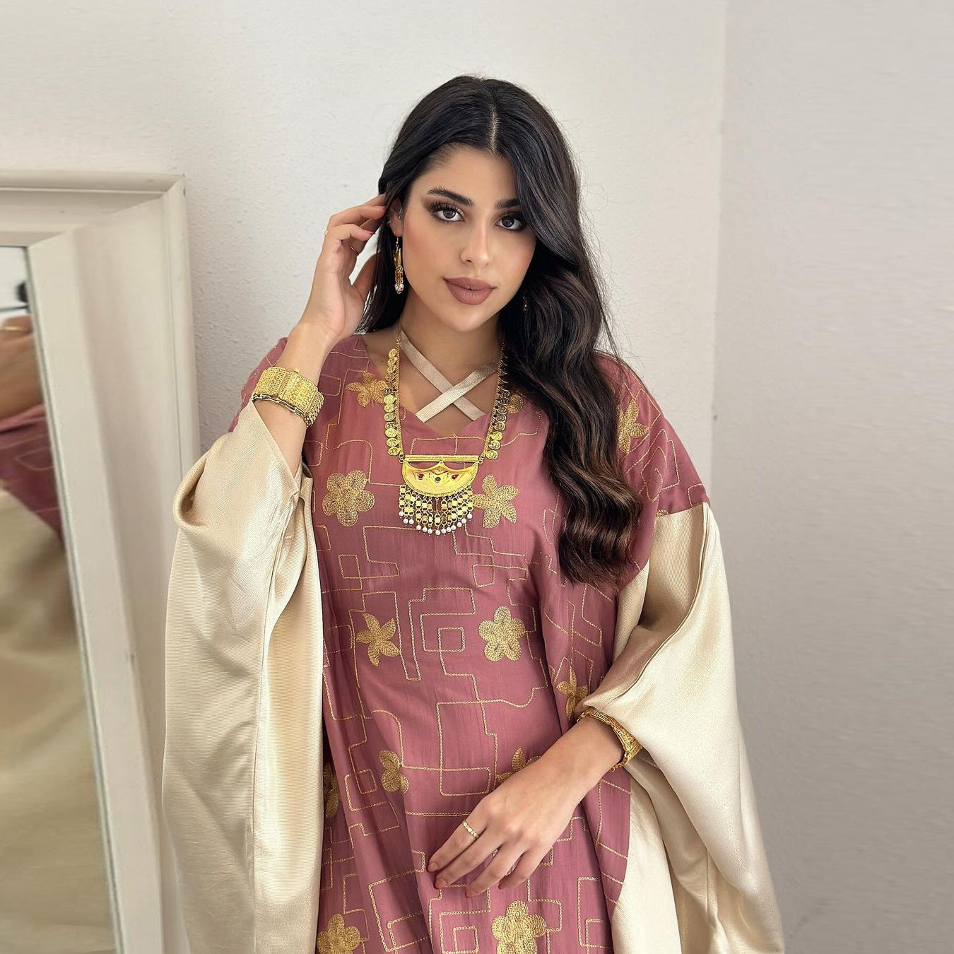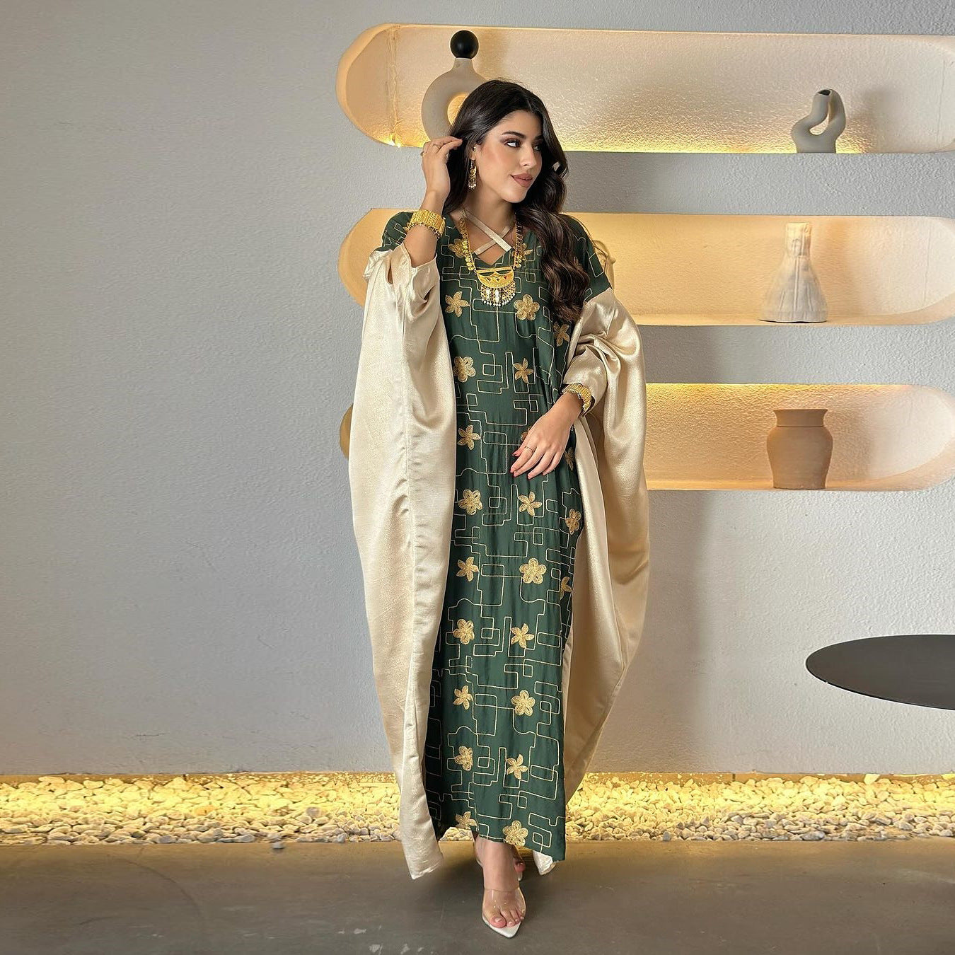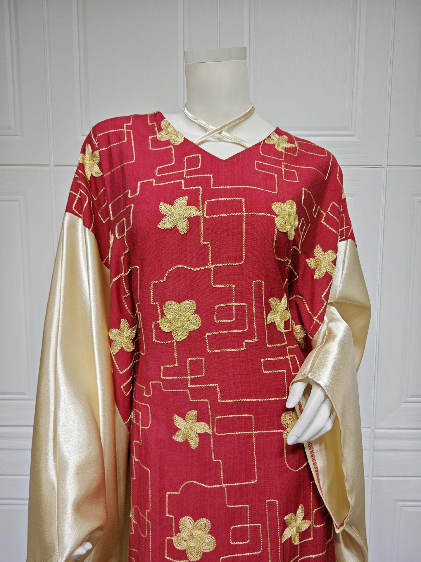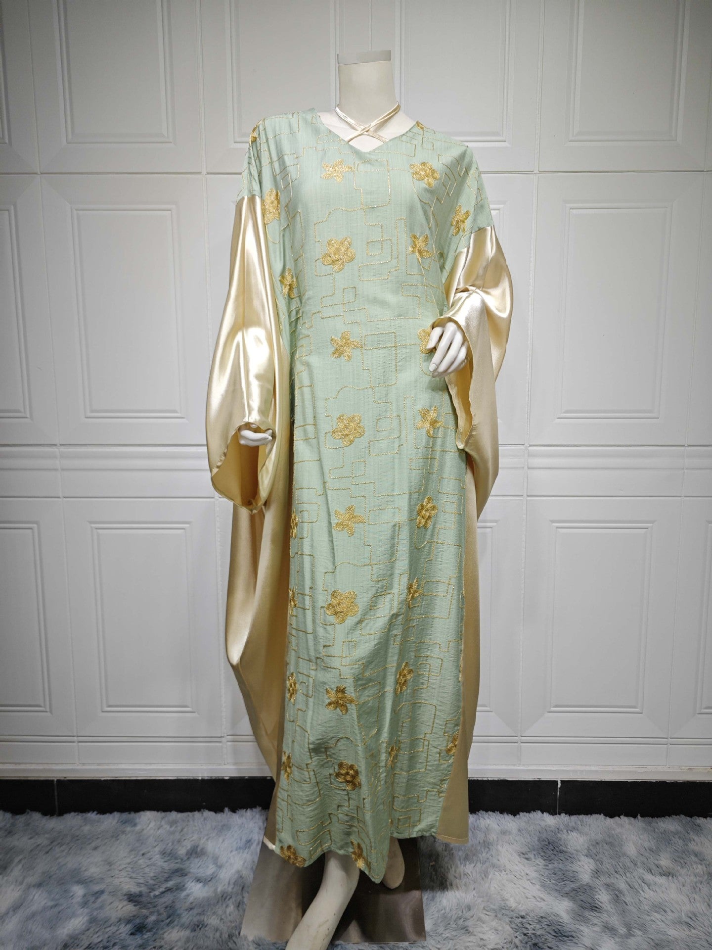 Vestido de bloque de color bordado para mujer musulmana de Dubai árabe