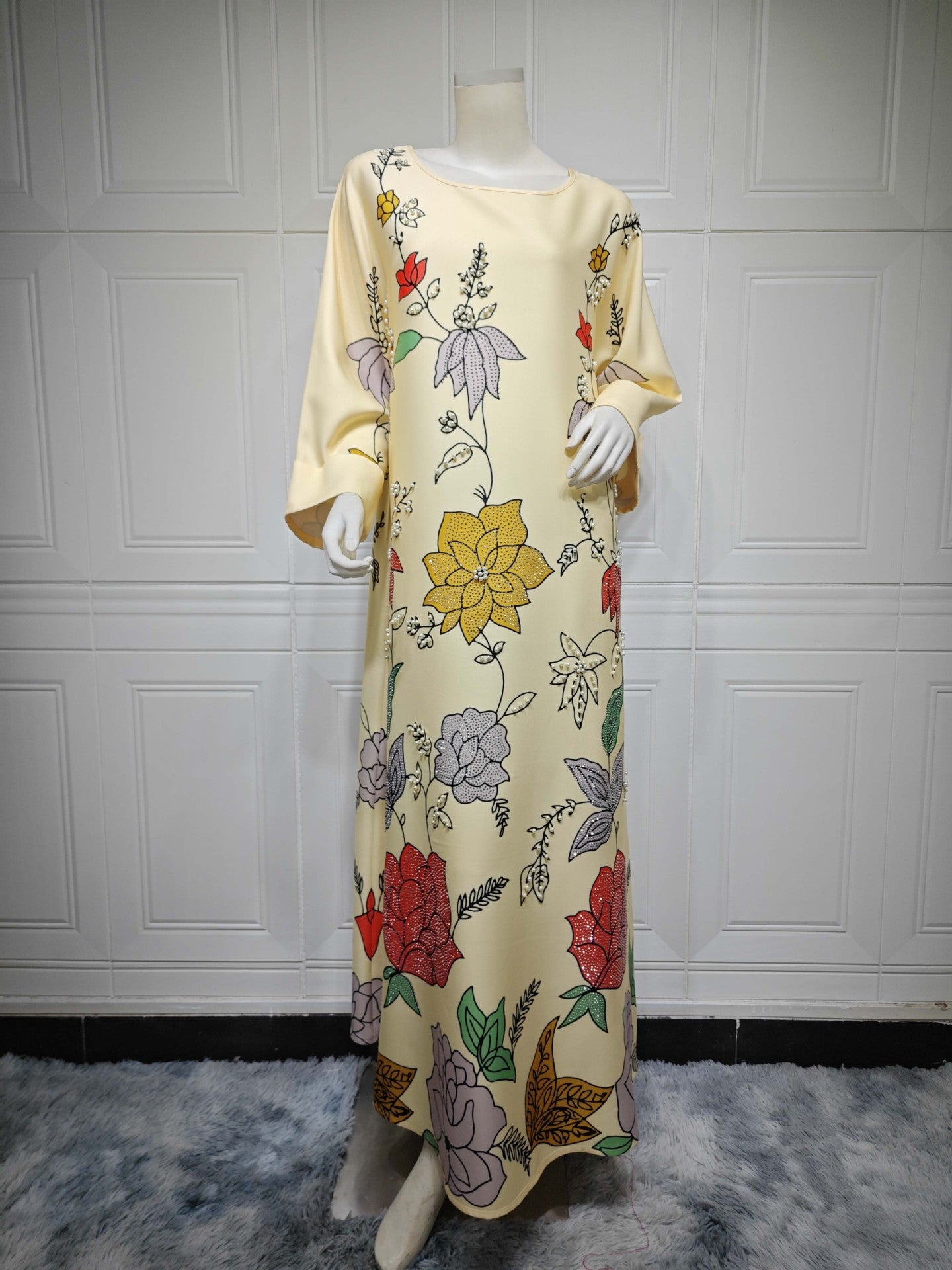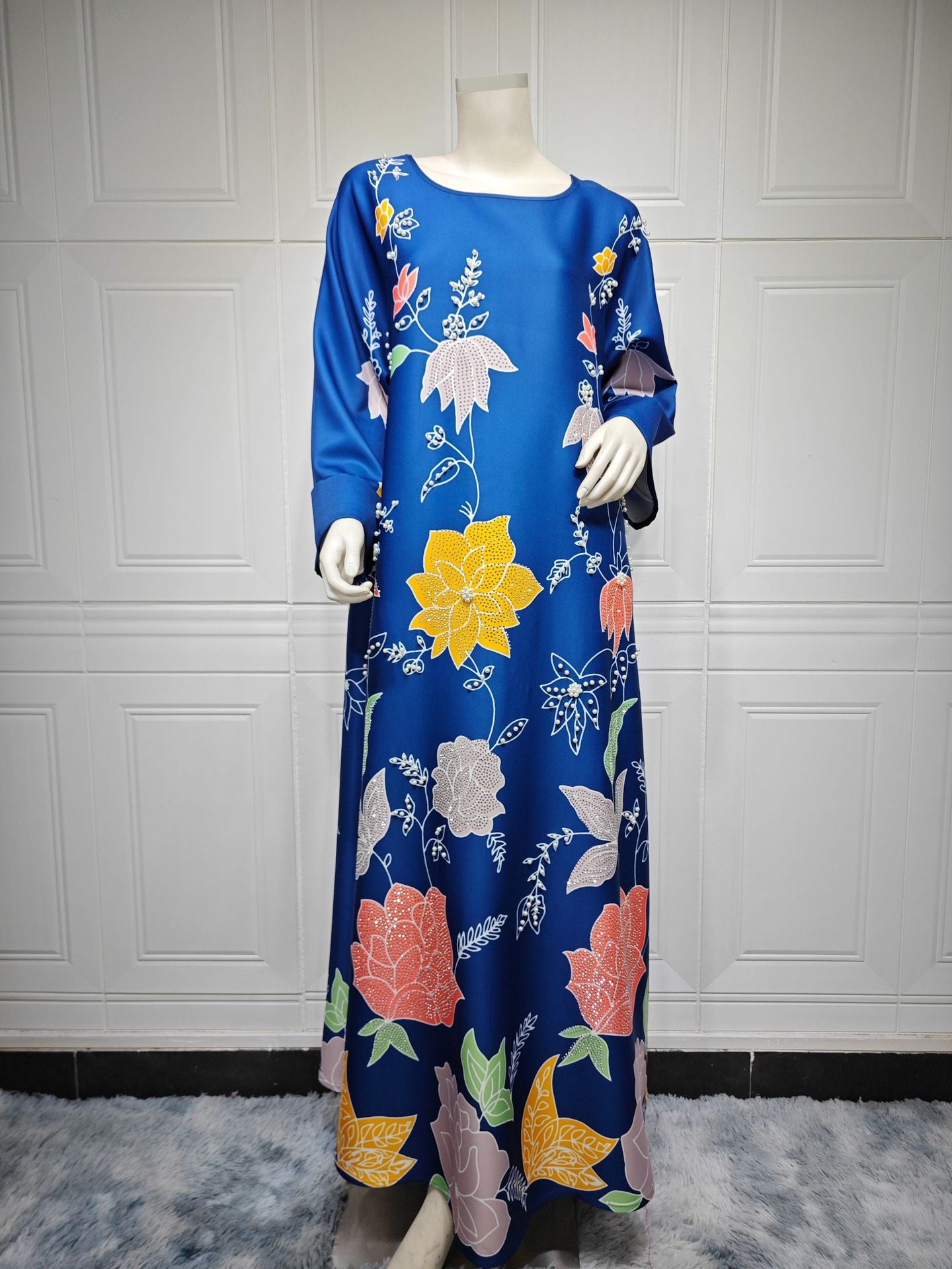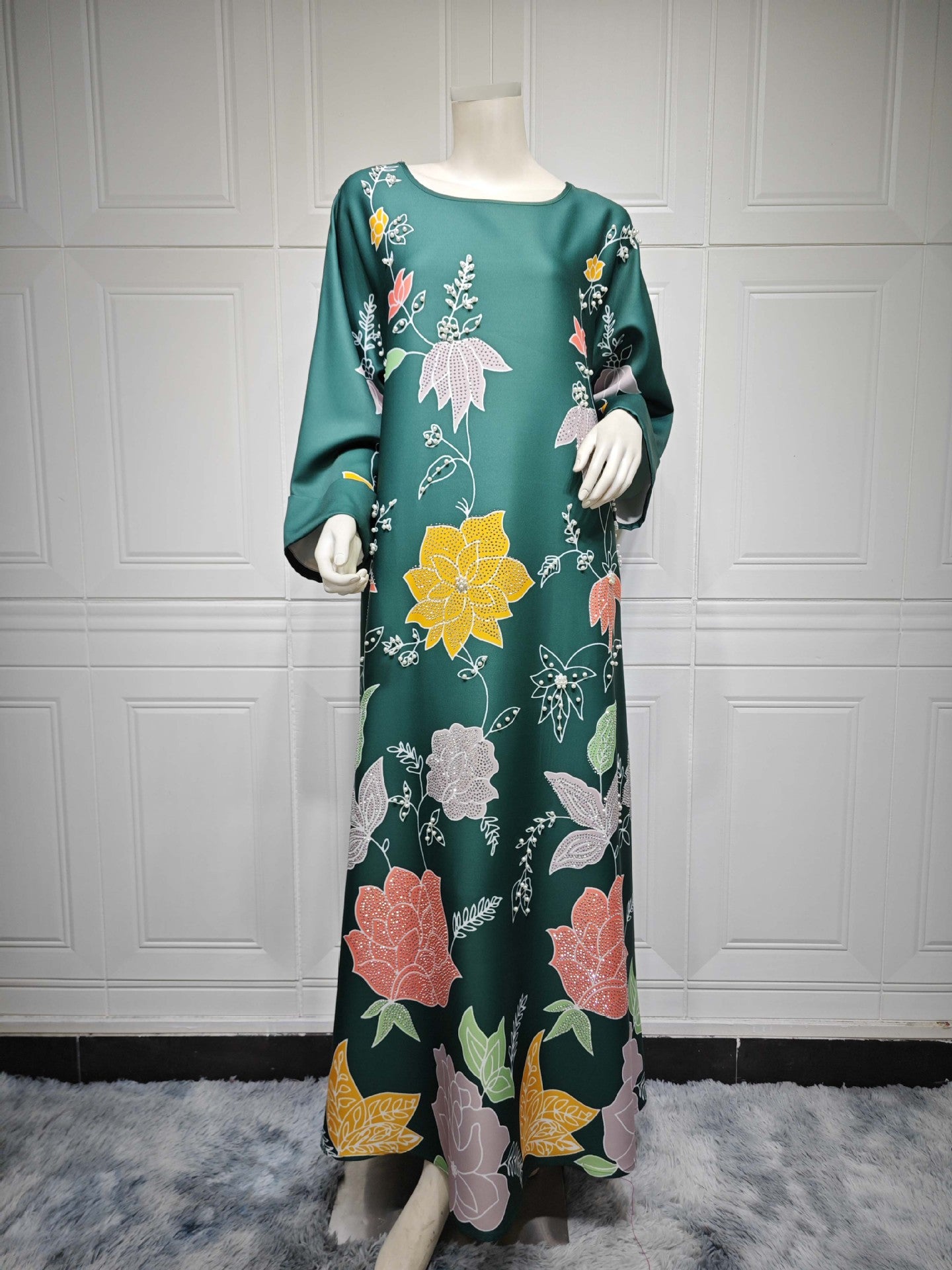 Bata étnica de Oriente Medio con estampado de diamantes calientes y cuentas de burbujas para mujer árabe MS569