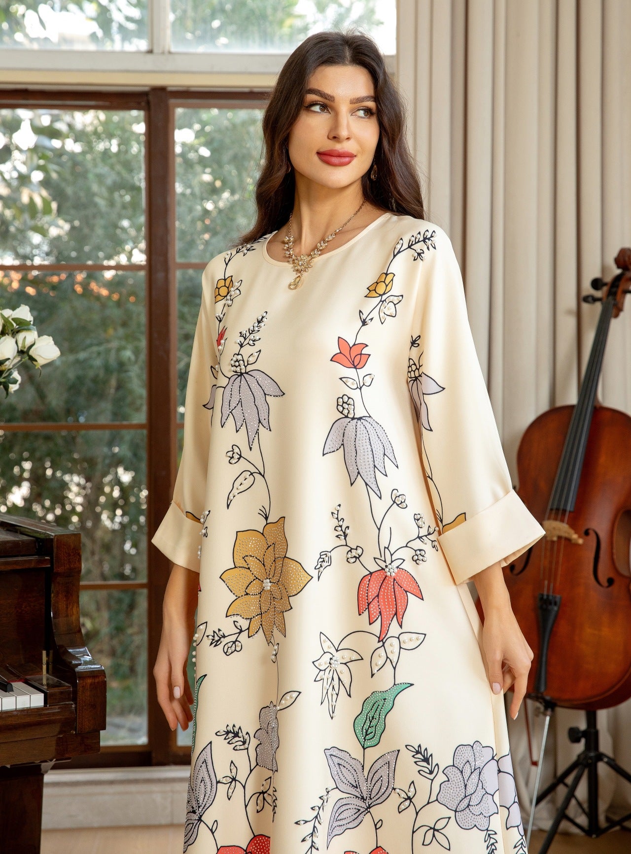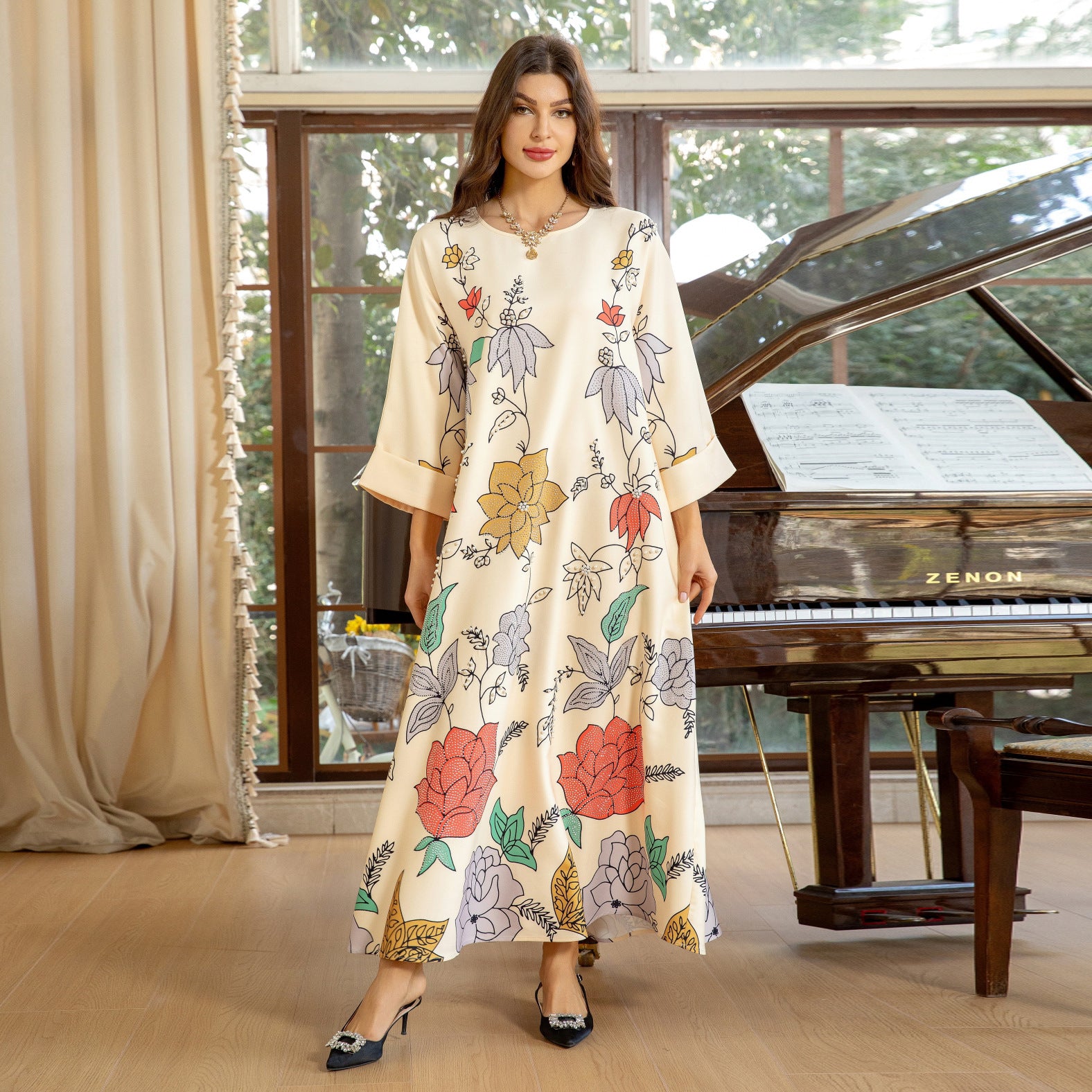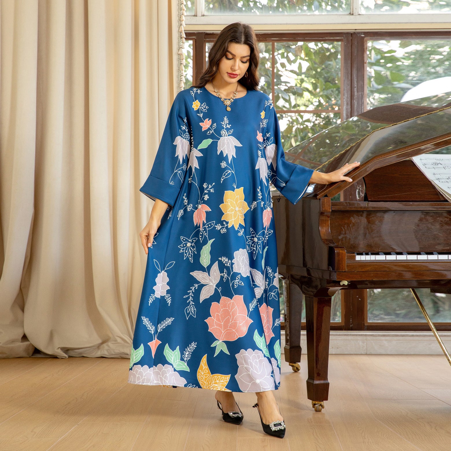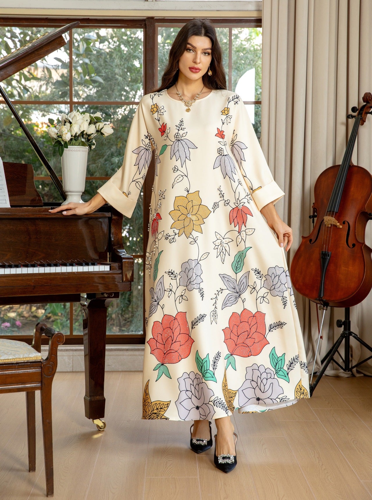Bata étnica de Oriente Medio con estampado de diamantes calientes y cuentas de burbujas para mujer árabe MS569