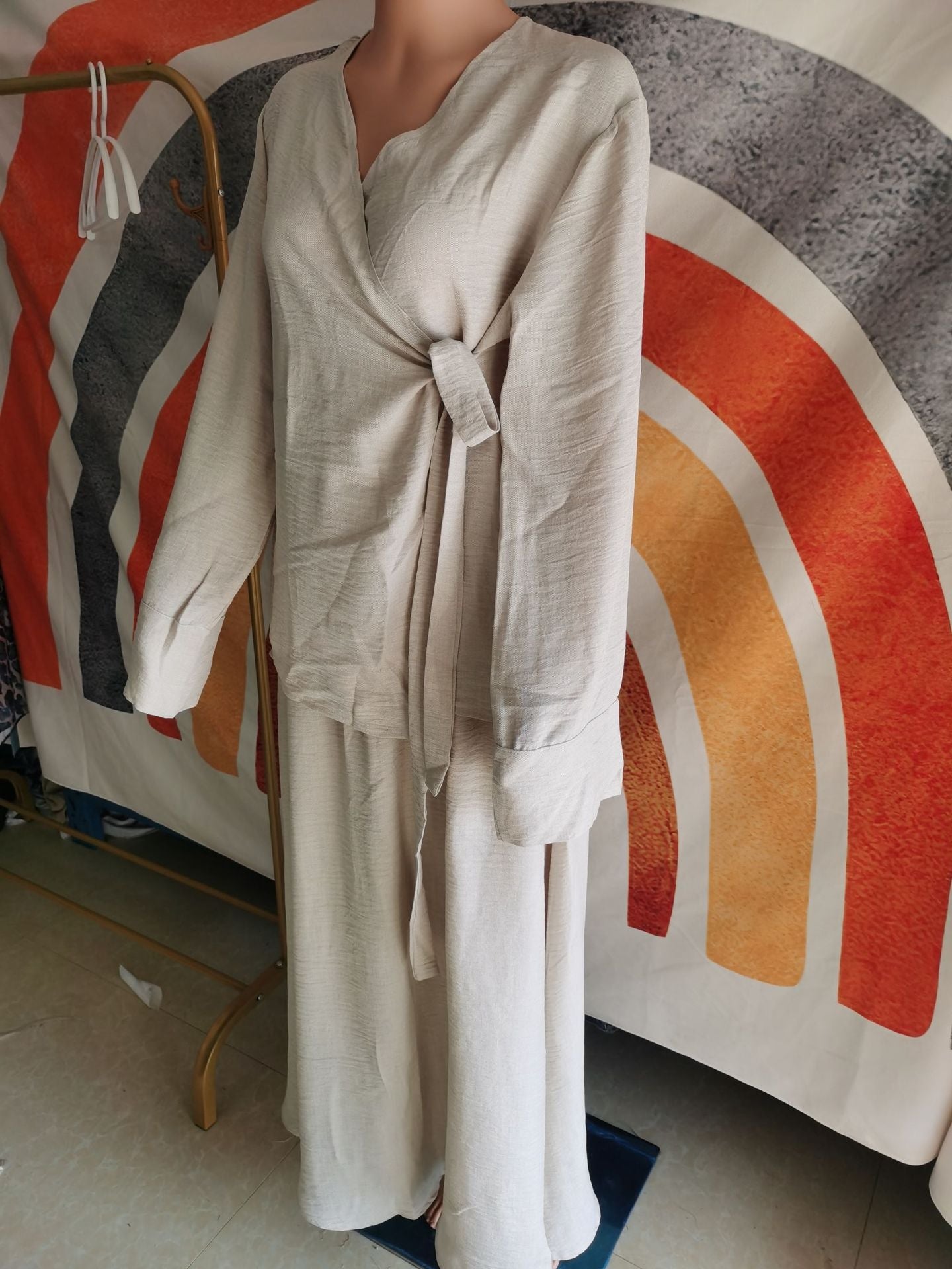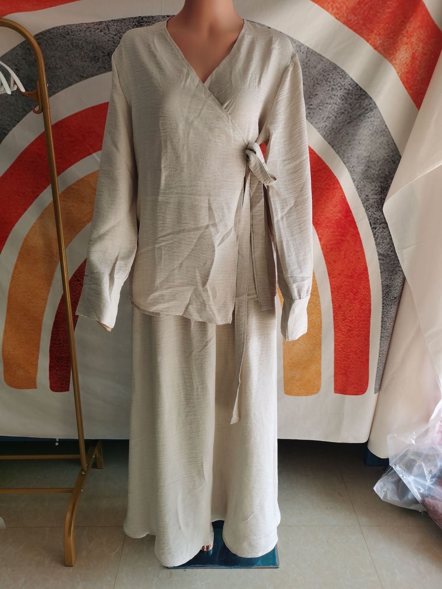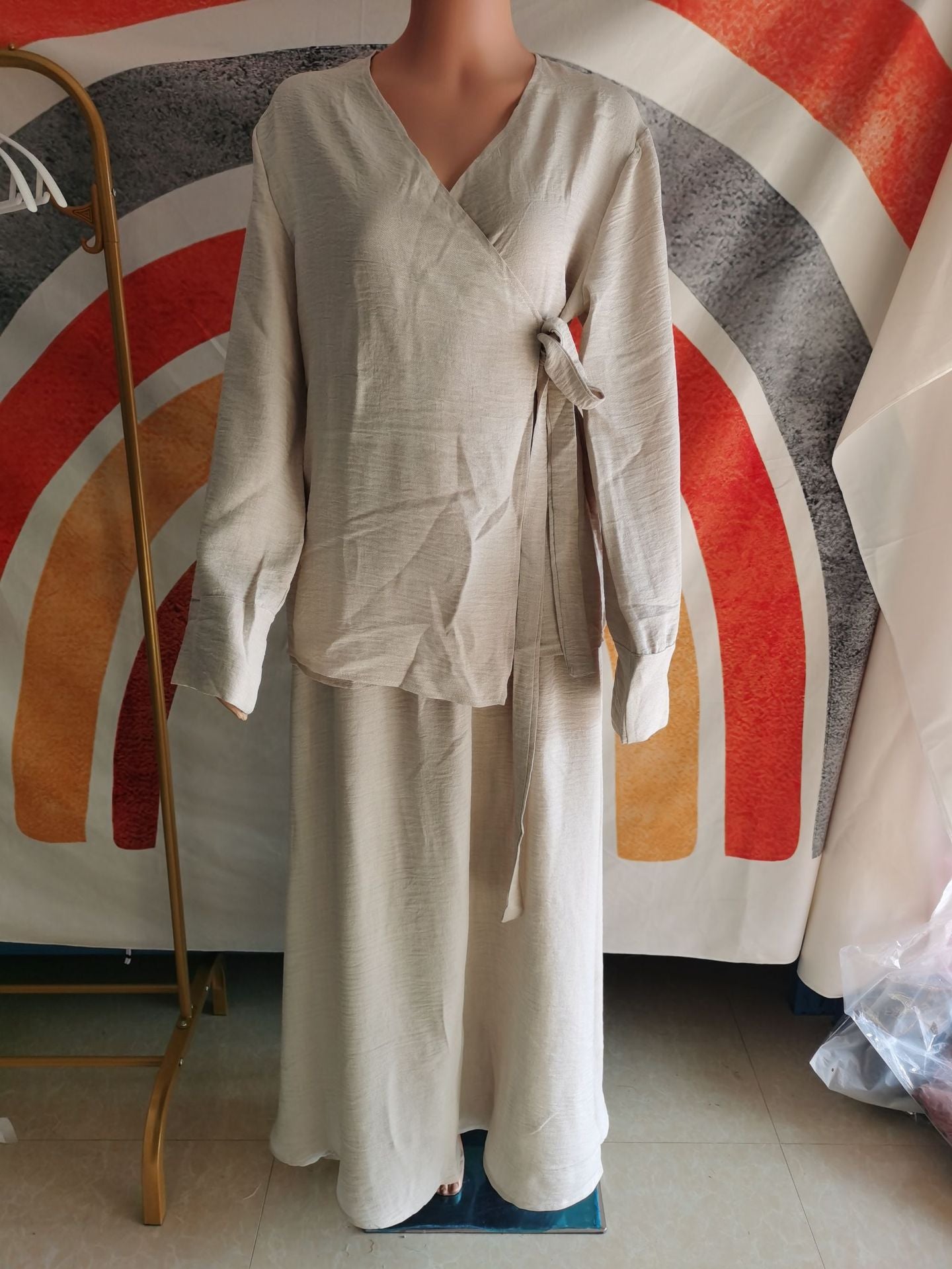 MS479#Vestido camisero abierto de tela con volantes y mangas largas de moda