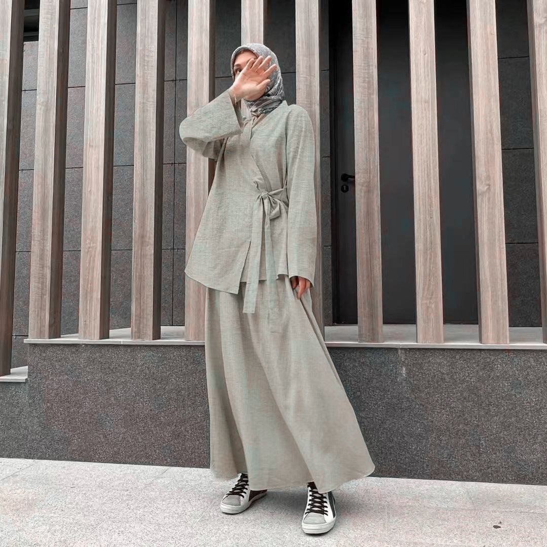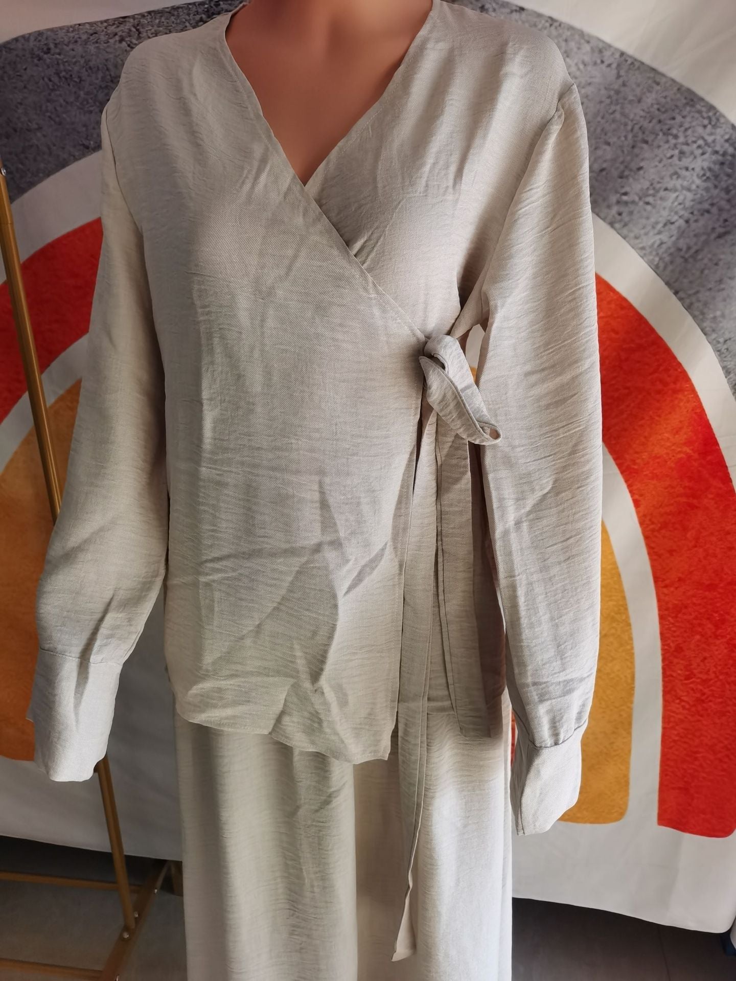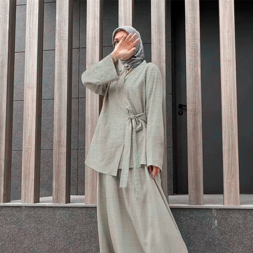 MS479#Vestido camisero abierto de tela con volantes y mangas largas de moda