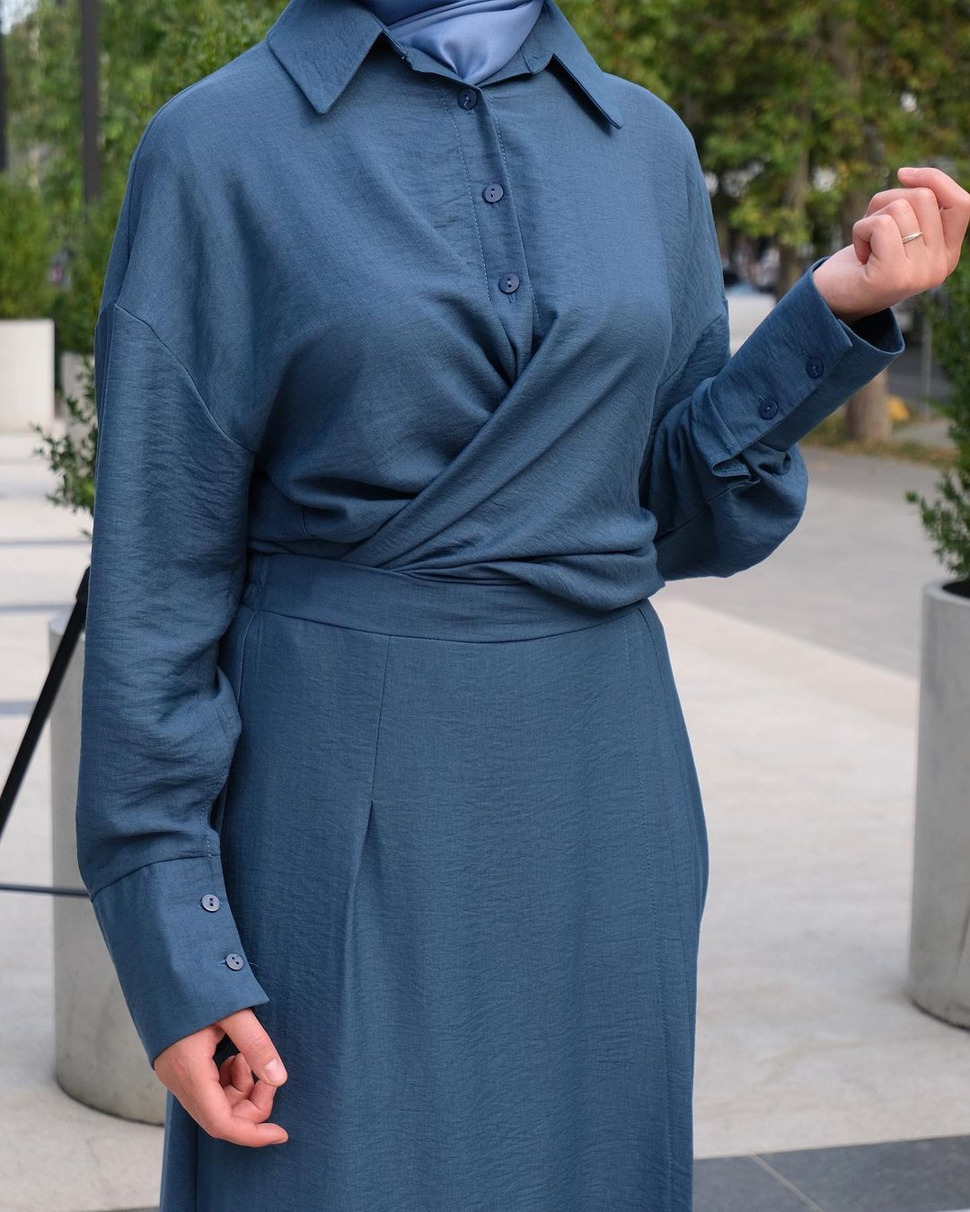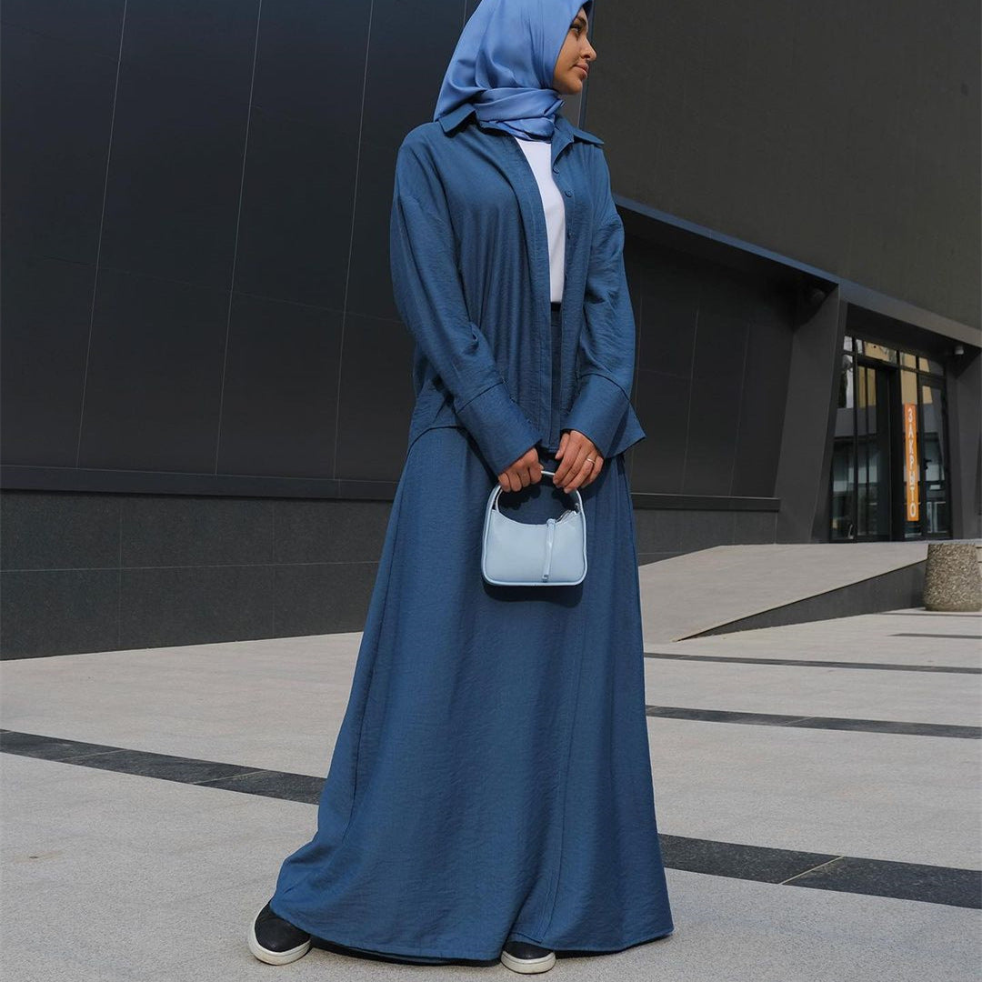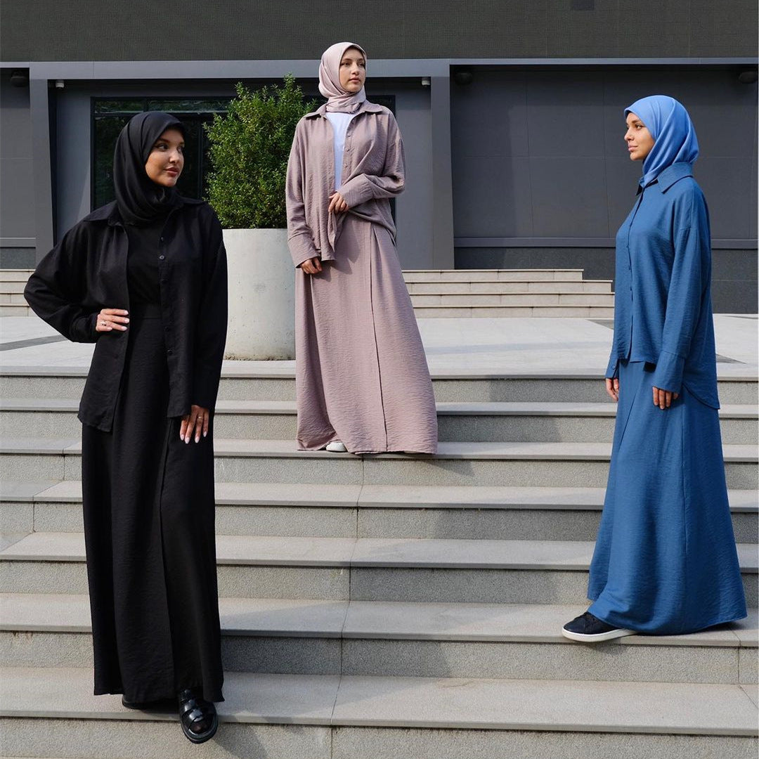 MS480#Traje casual con camisa y falda de manga larga de crepé de alta calidad