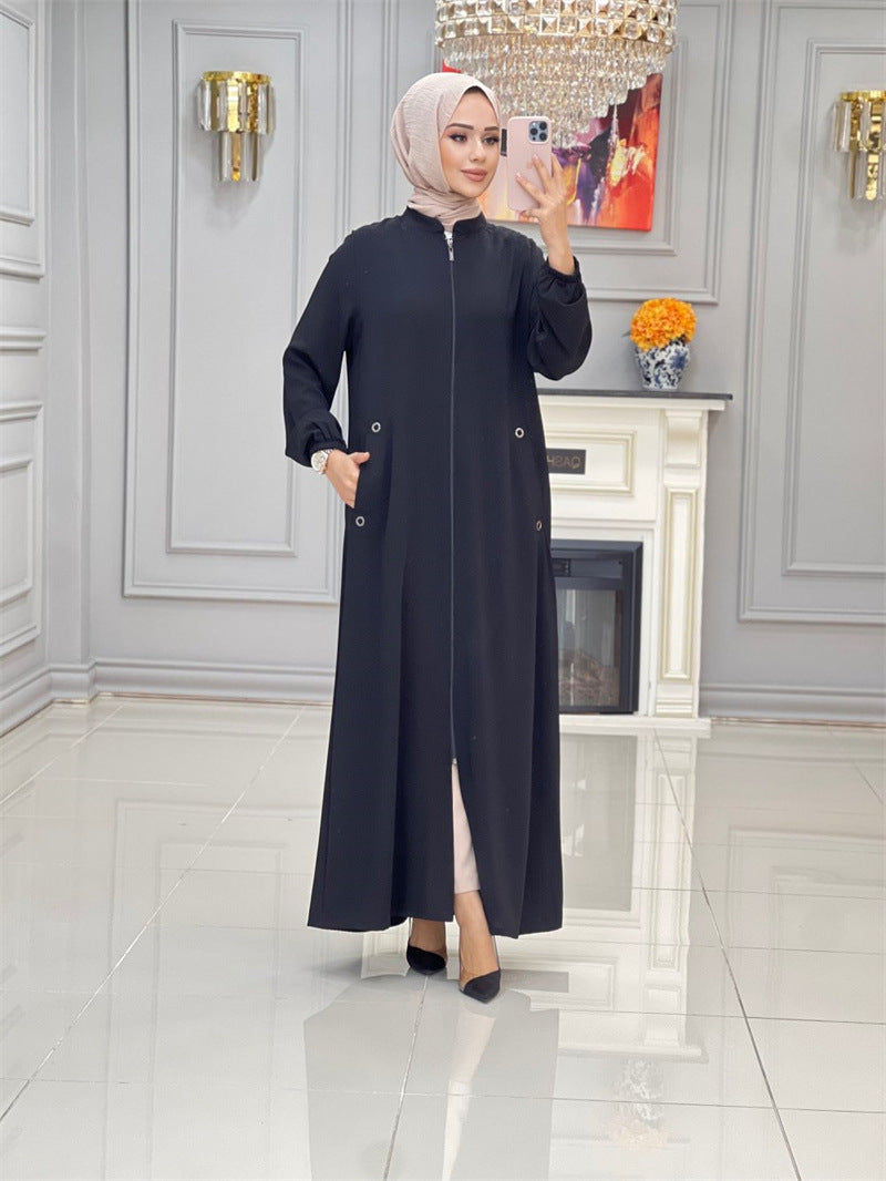MS499#Vestido informal holgado con cuello alto y cremallera para mujer, con temperamento, tipo bolsa