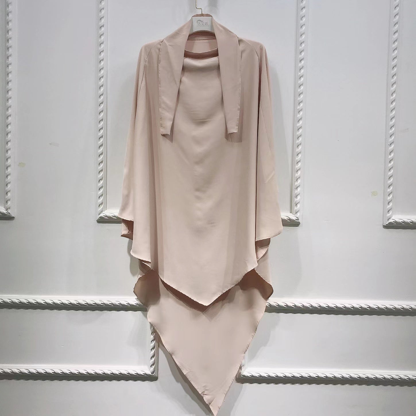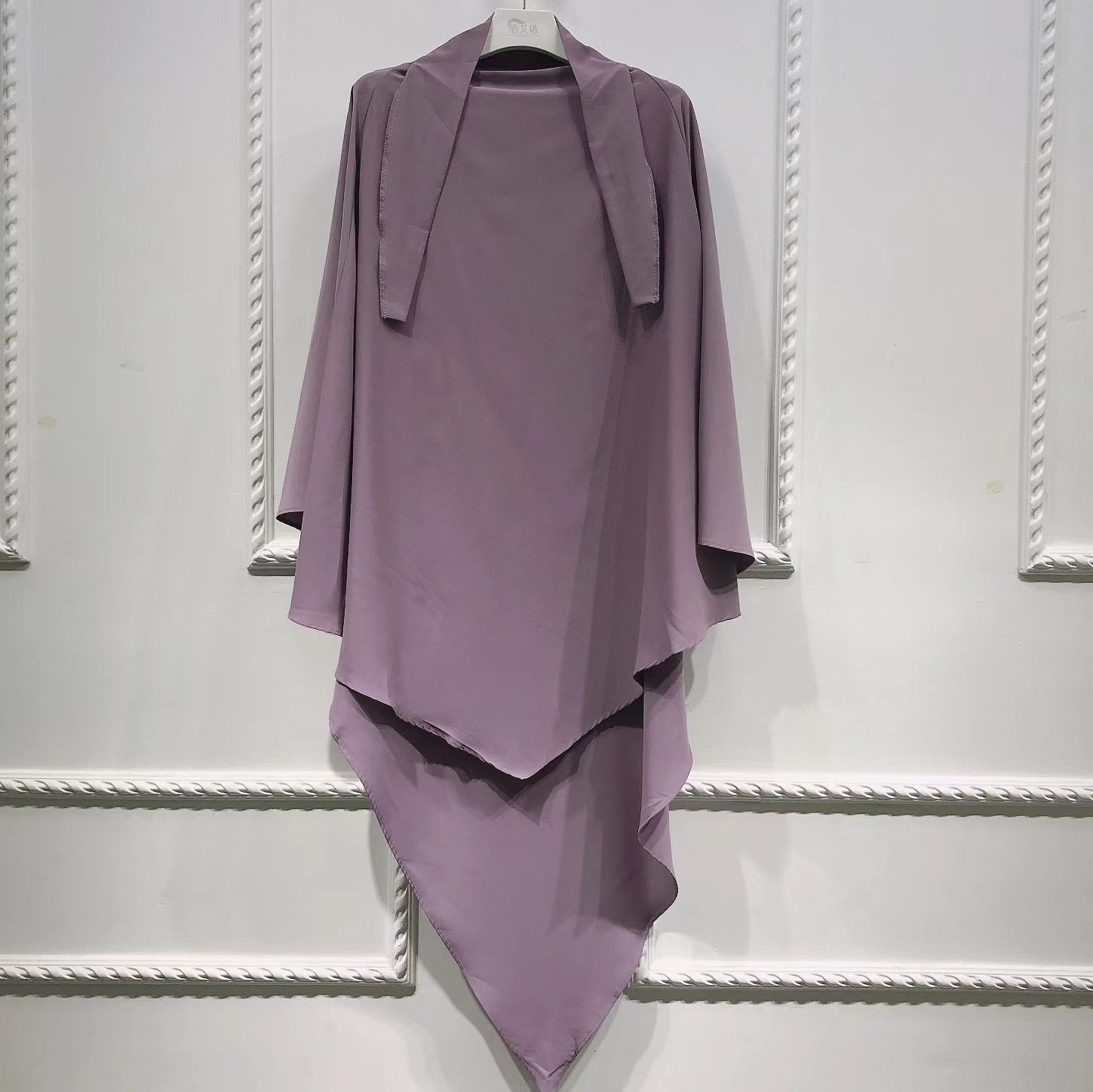 MS082#Túnica corta de color puro con pañuelo en la cabeza (Nidah)