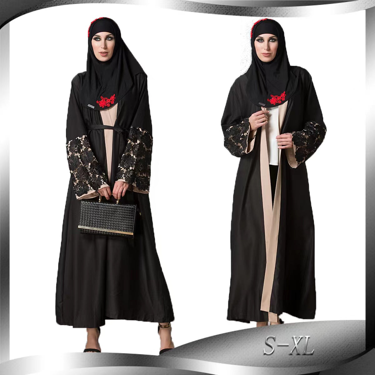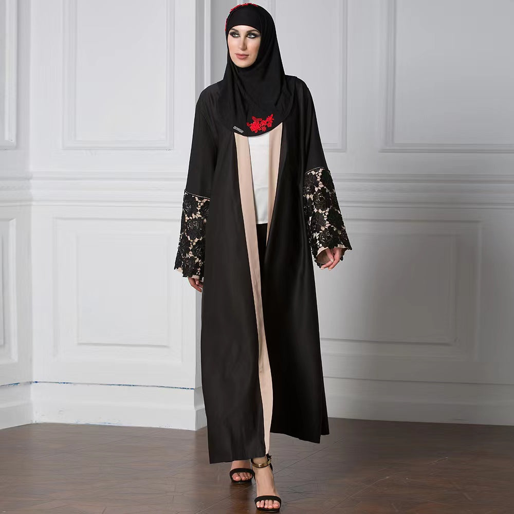 MS199#Vestido musulmán con parches de encaje en los puños