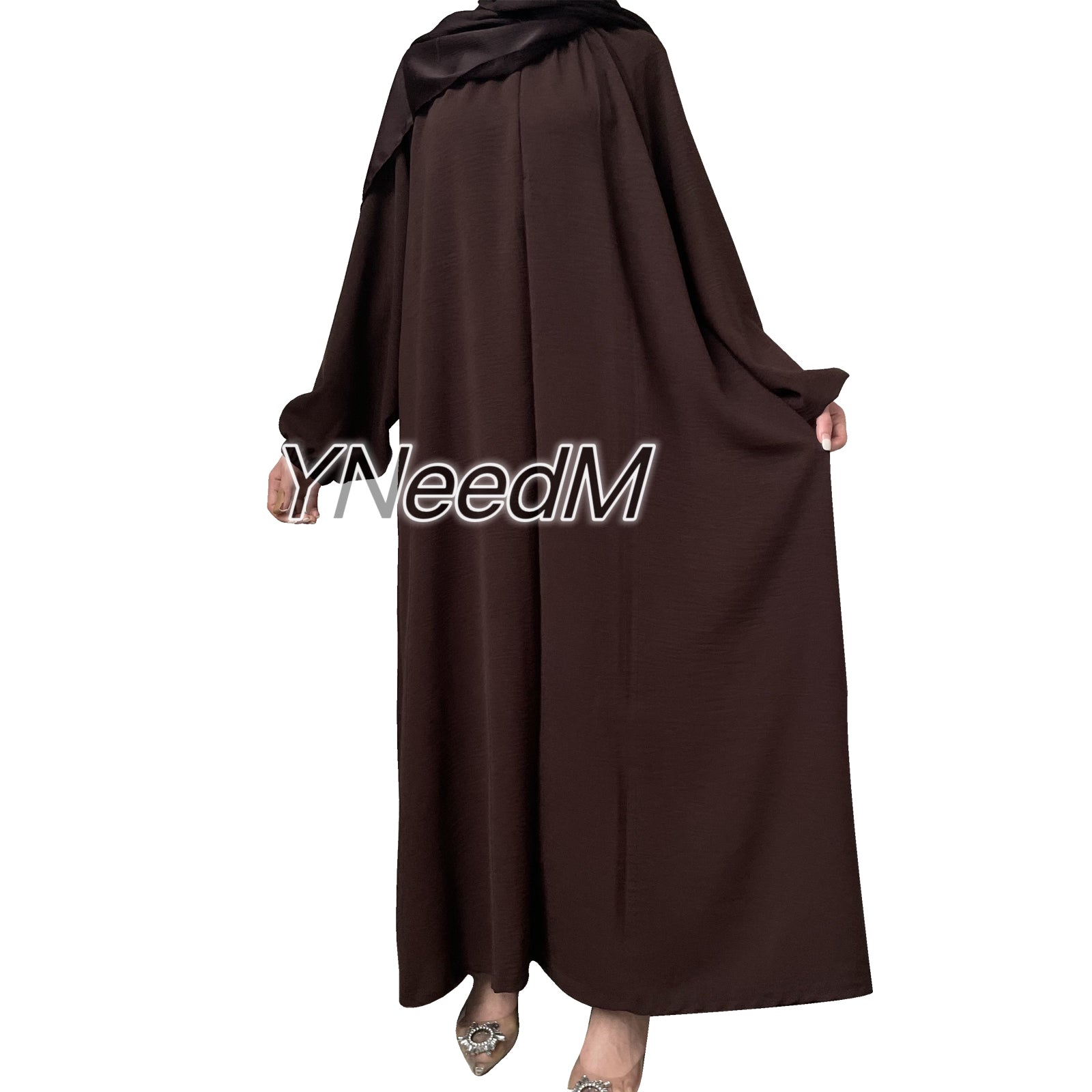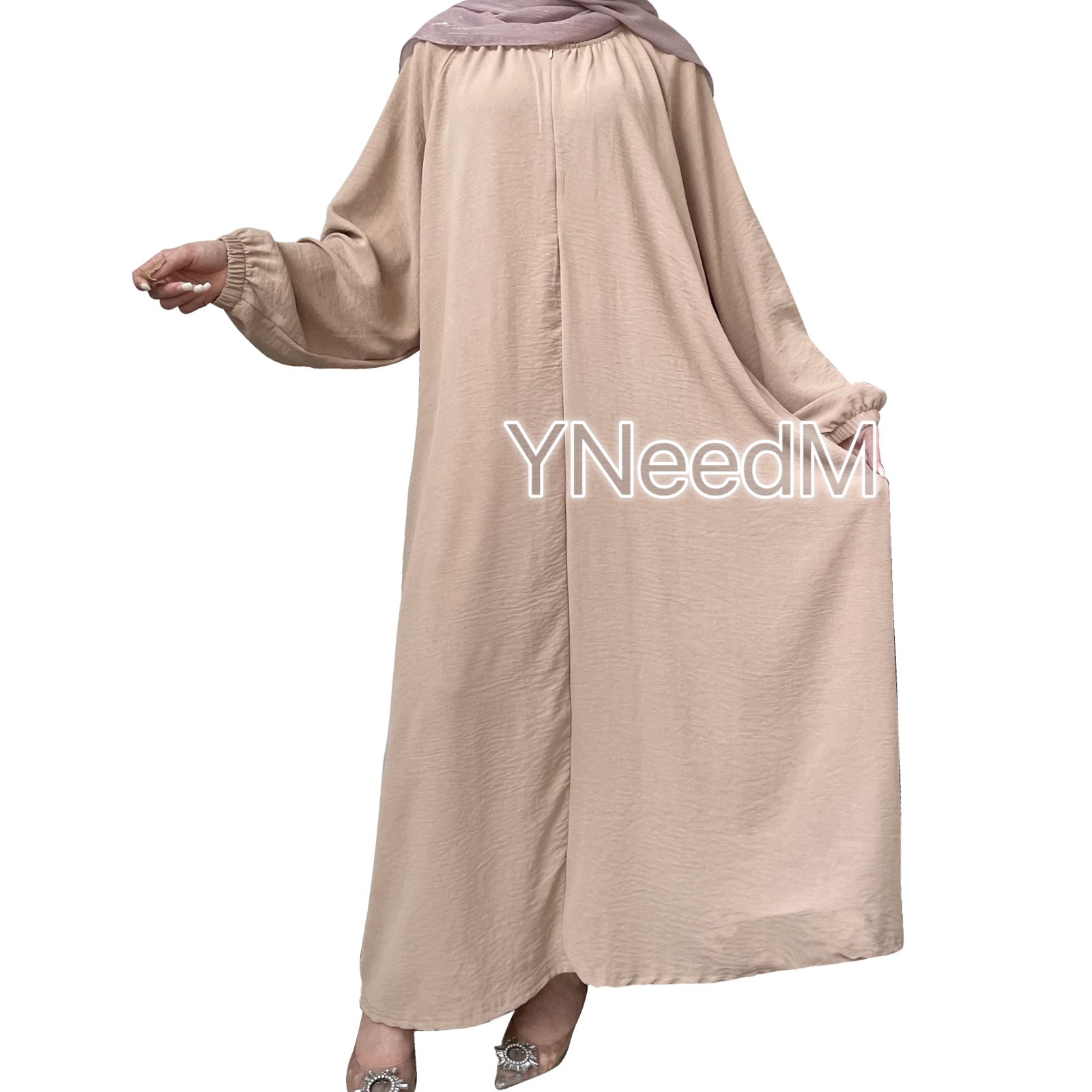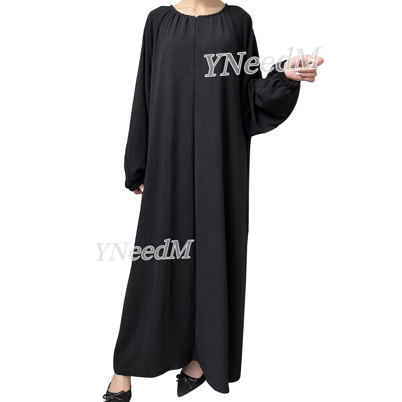 MS258#Abaya de crepé de color liso con cremallera frontal informal de moda musulmana (crepé)