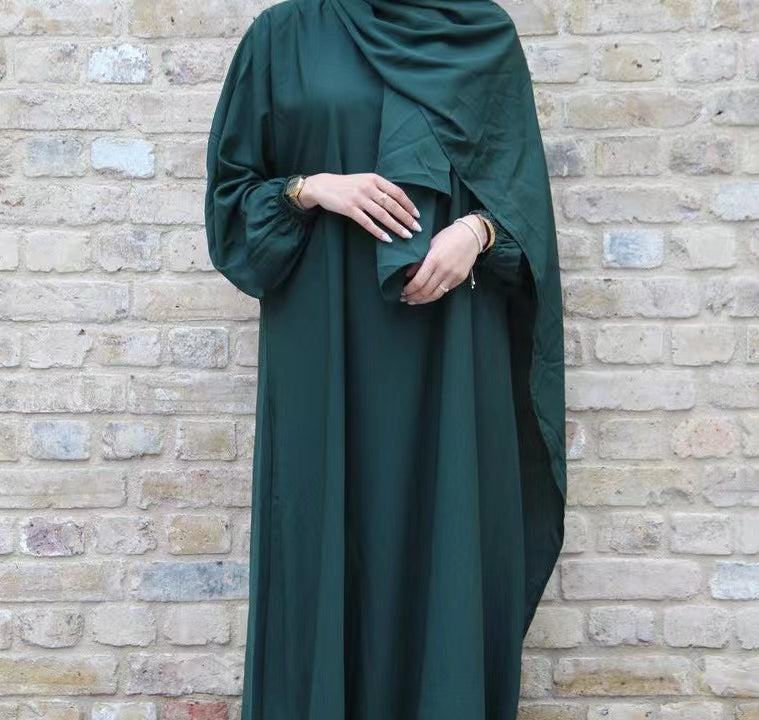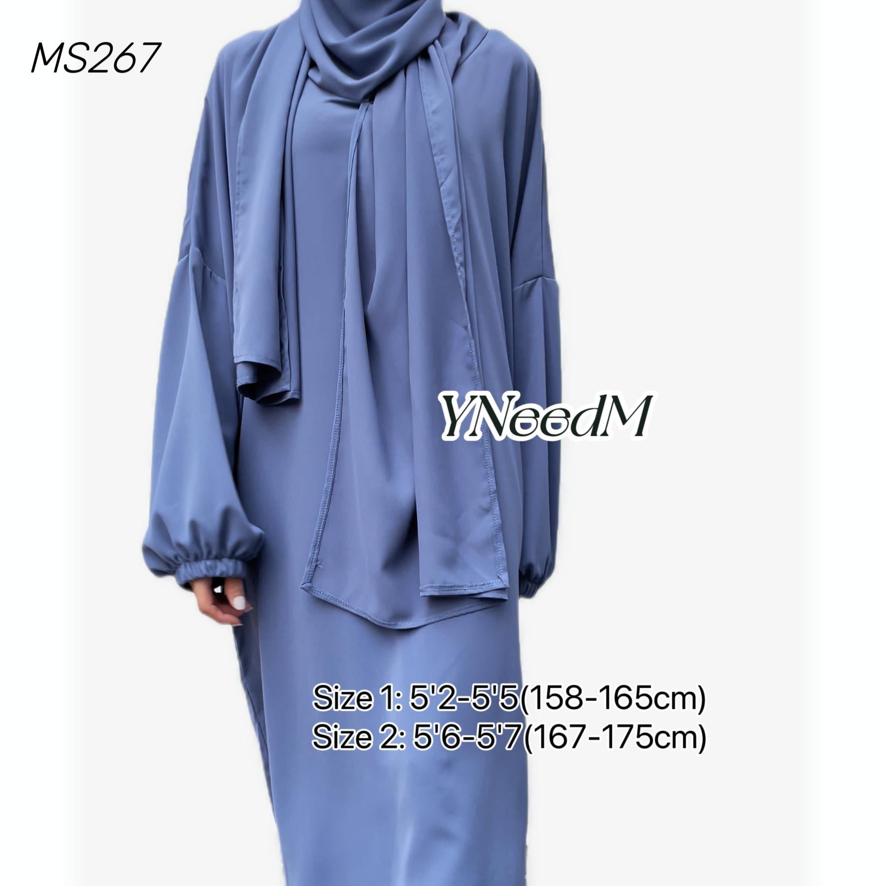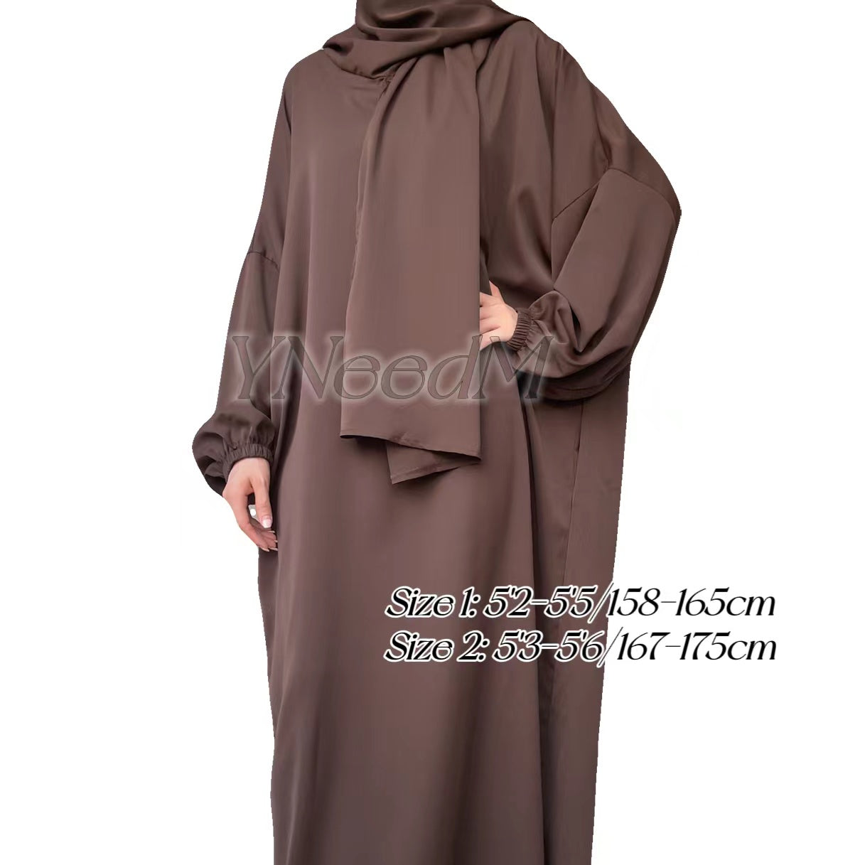 MS267#Vestido tipo túnica musulmán con bufanda de color sólido