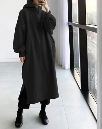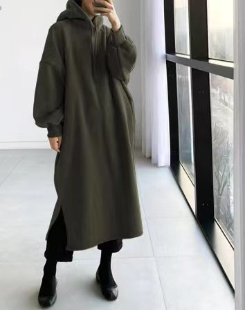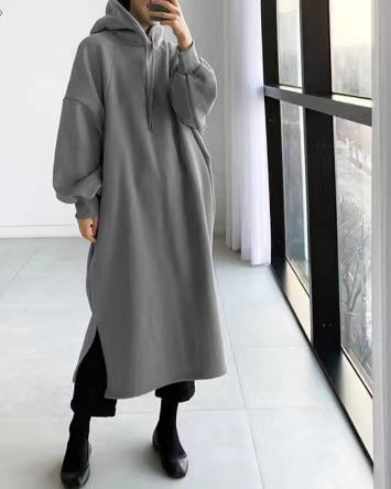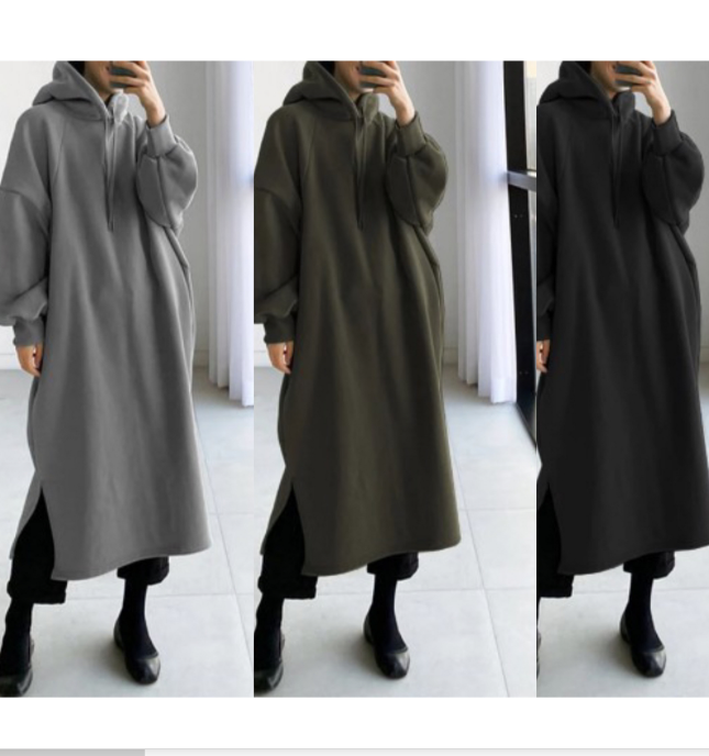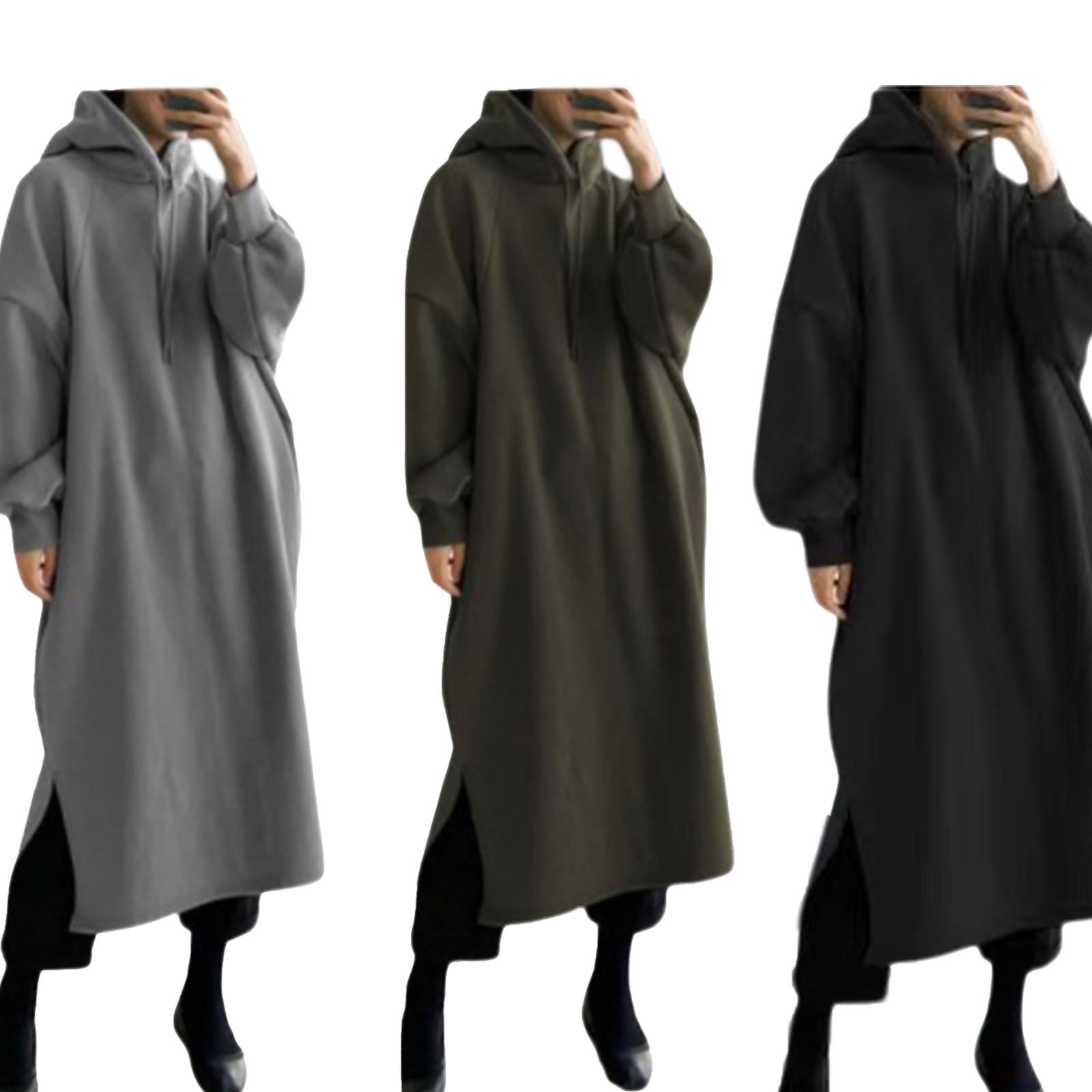 Vestido corto holgado con capucha de polar suave, bolsillos y cordones, sudadera con capucha sencilla y discreta n.° 269