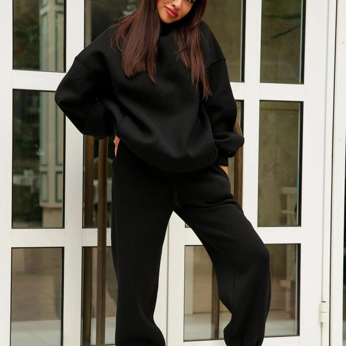 MS286#Nuevo conjunto casual de dos piezas con suéter con capucha de color liso