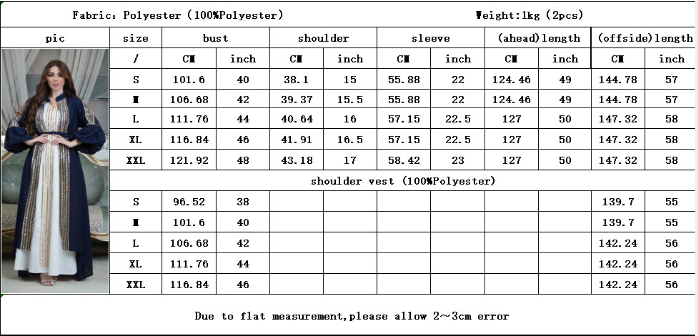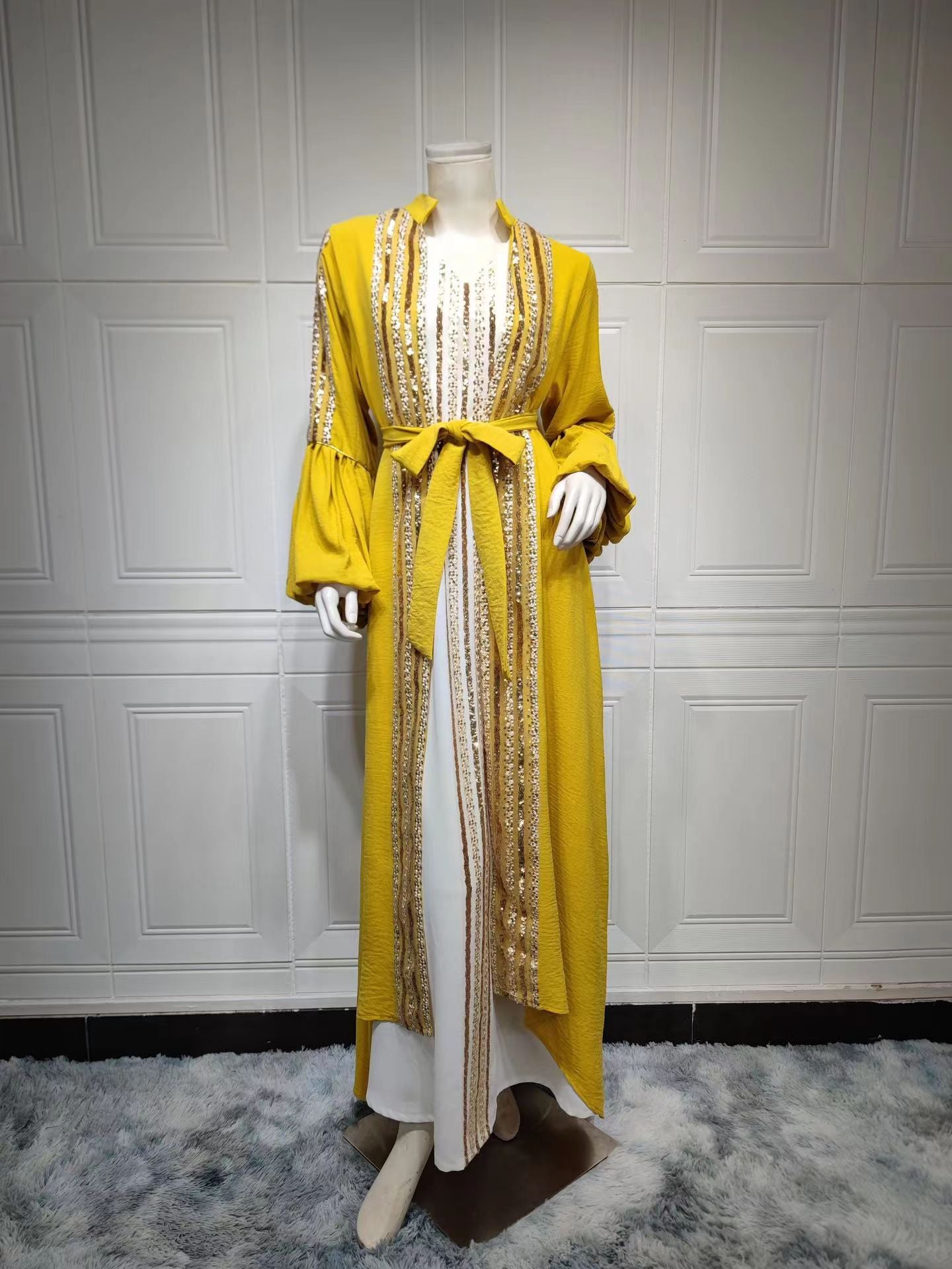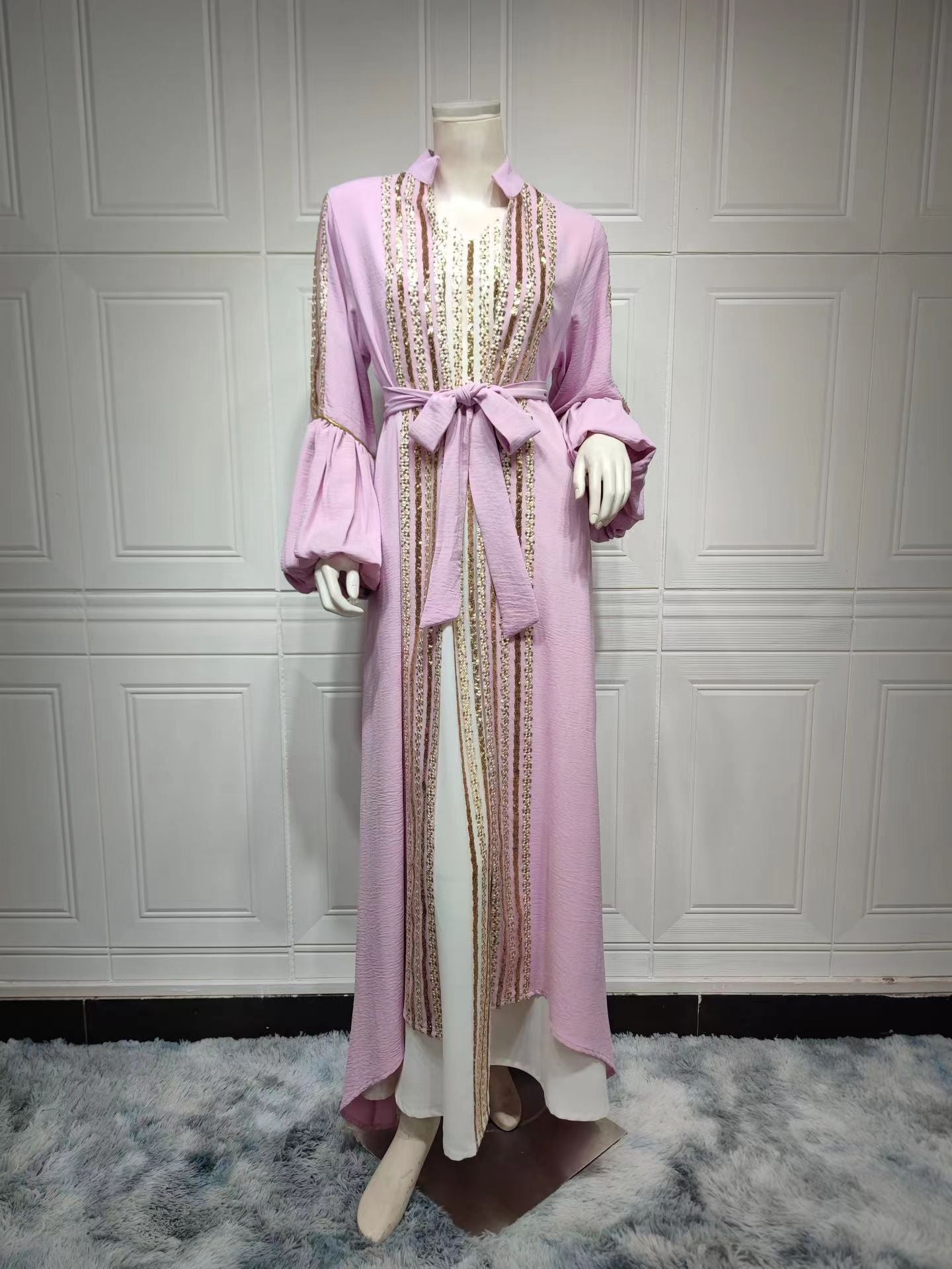 Bata de dos piezas con mangas abullonadas bordadas para mujer de moda musulmana MS319