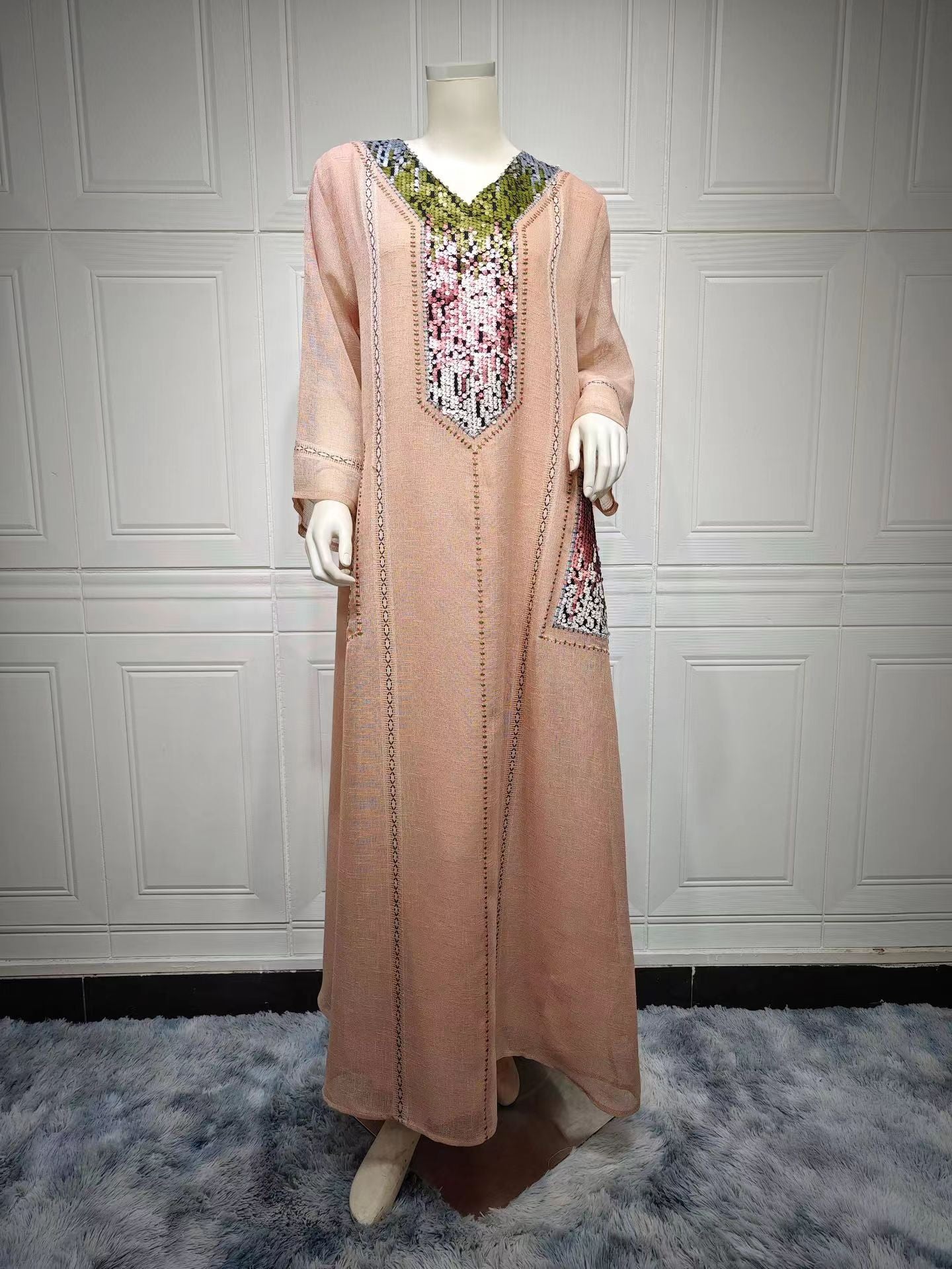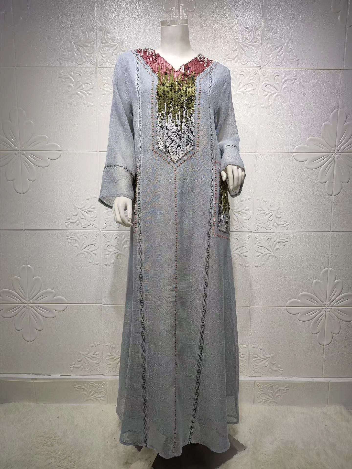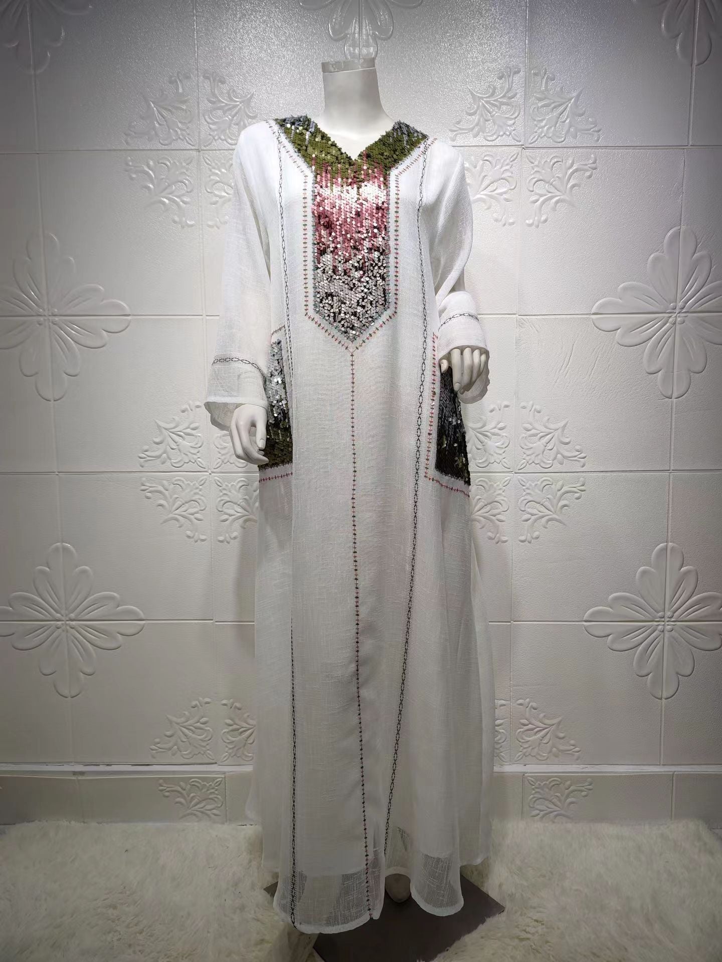 MS331#Túnica bordada con lentejuelas y cuentas para mujeres musulmanas