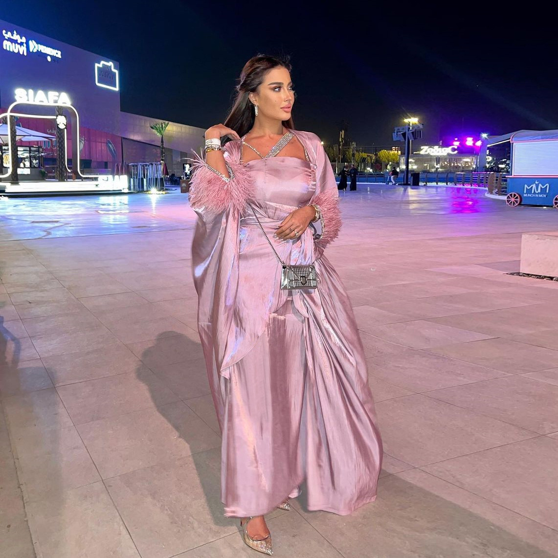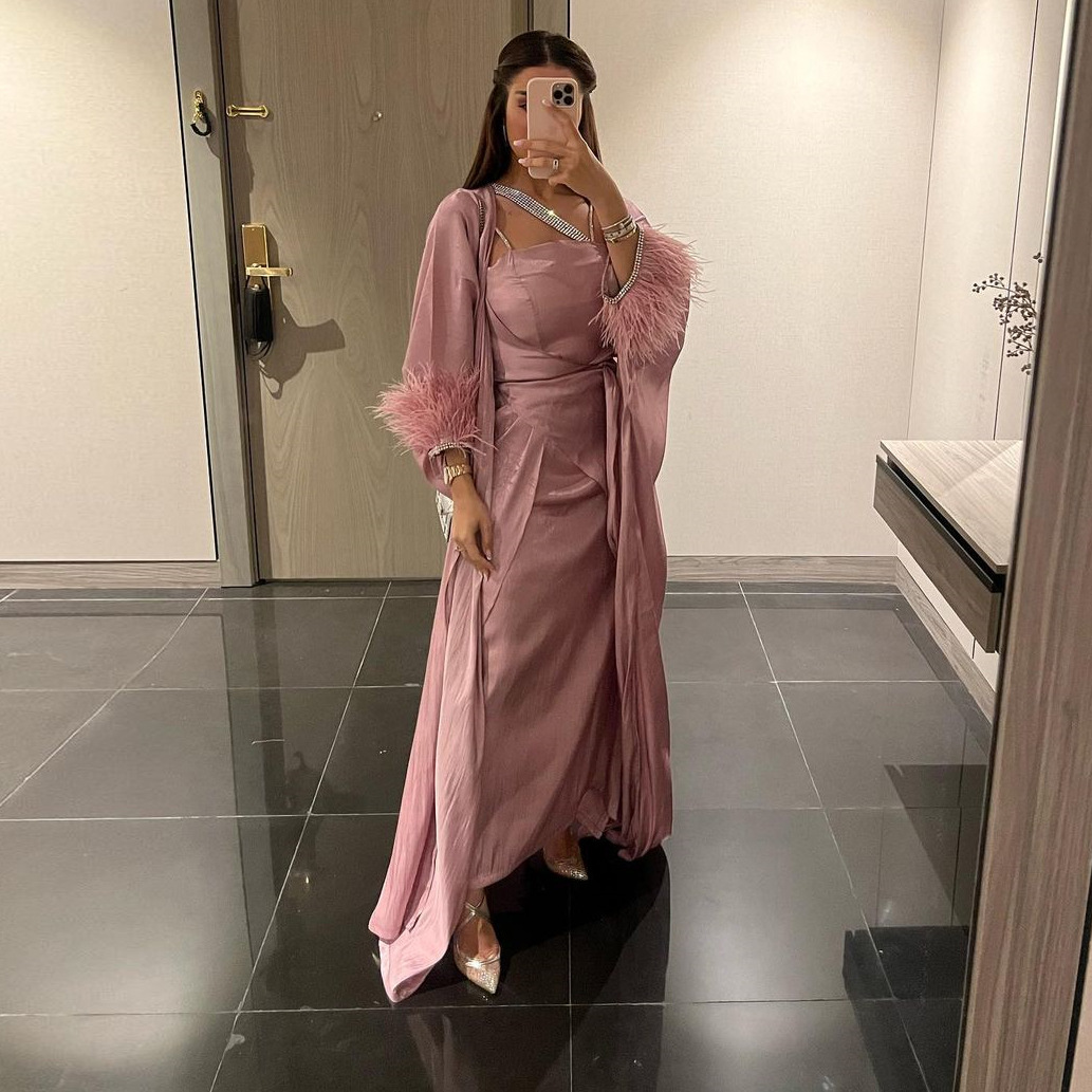 MS338#Bata de tres piezas con plumas para mujer musulmana