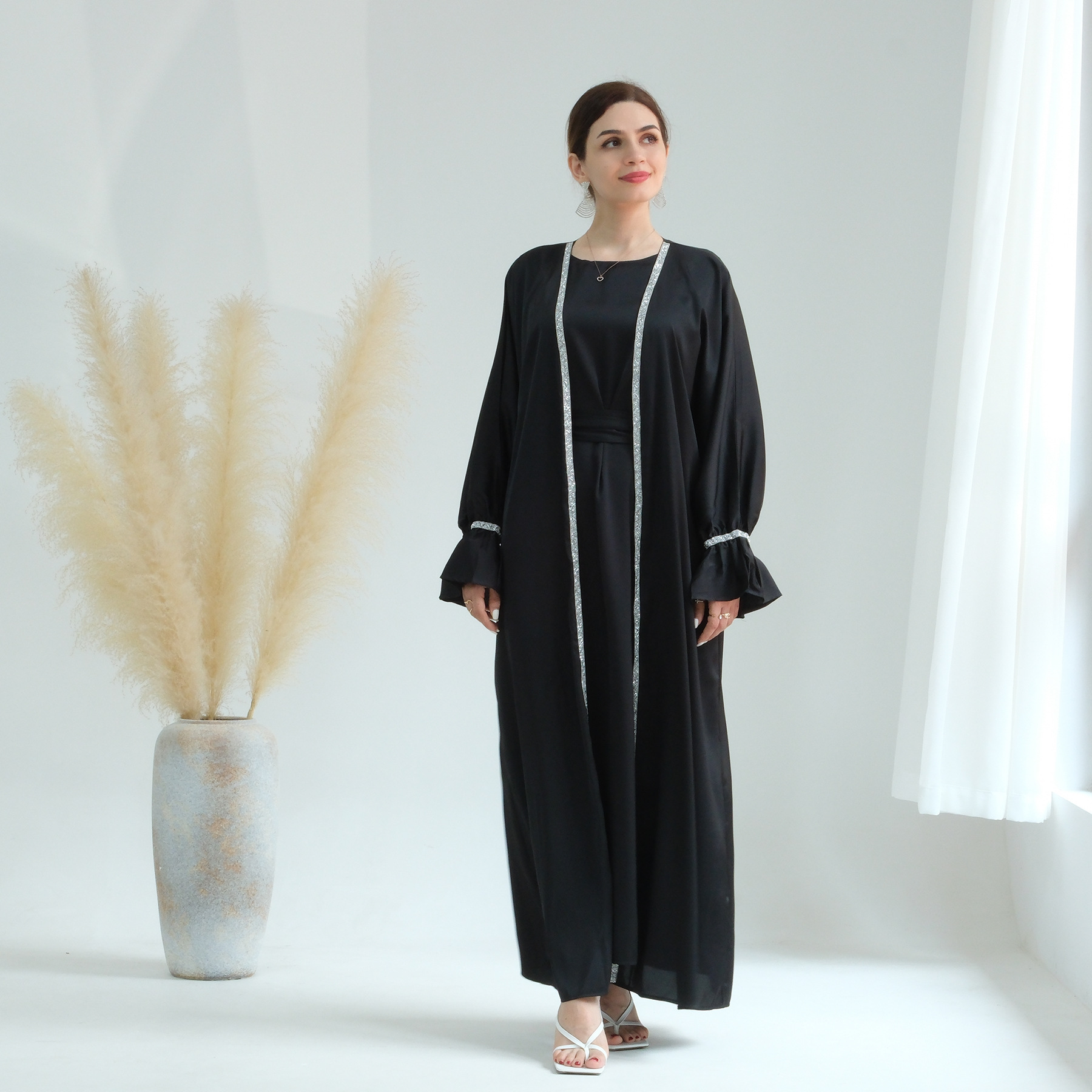 MS346#Conjunto de bata tipo cárdigan con cuentas de color liso sin mangas en el interior
