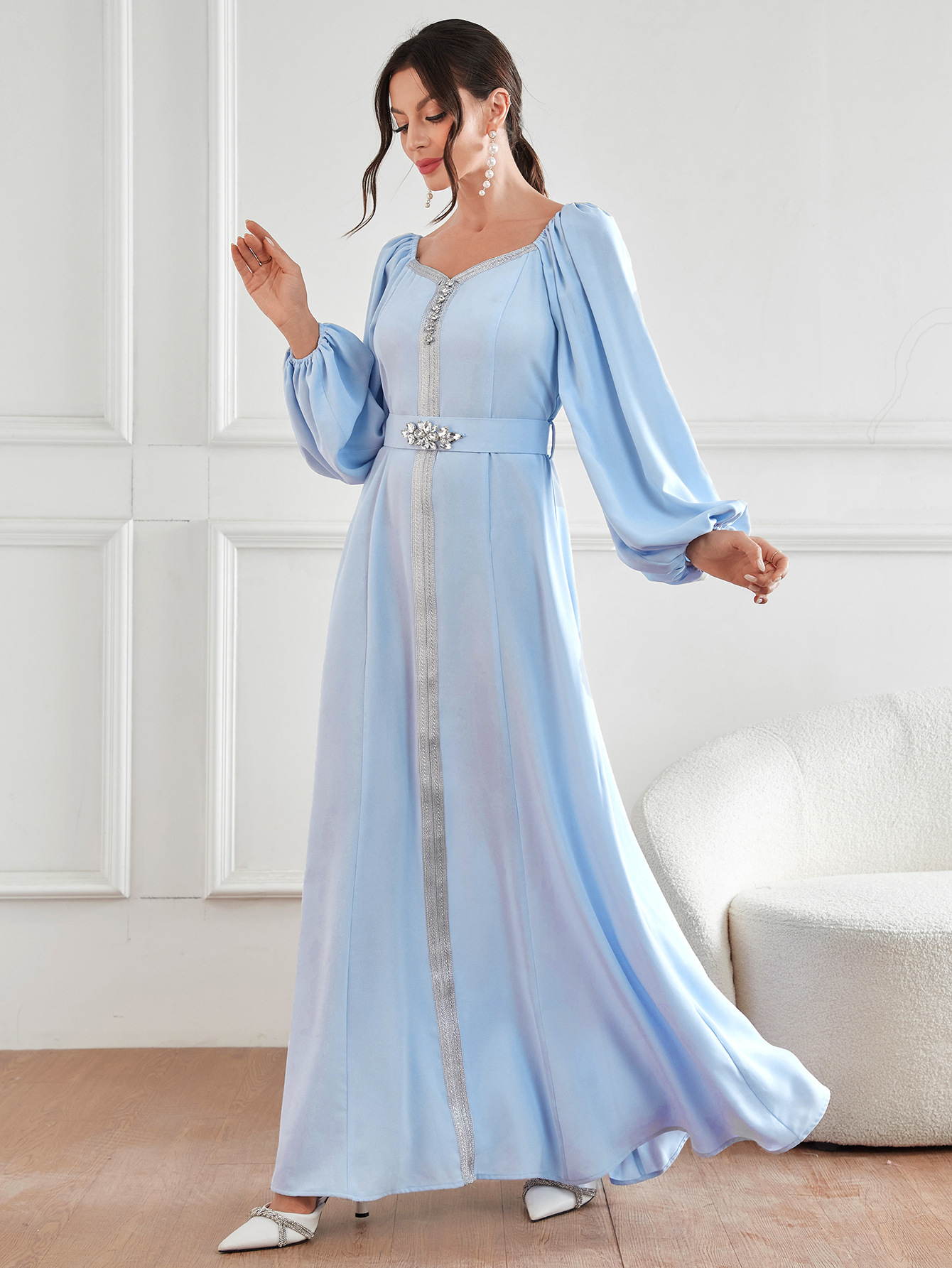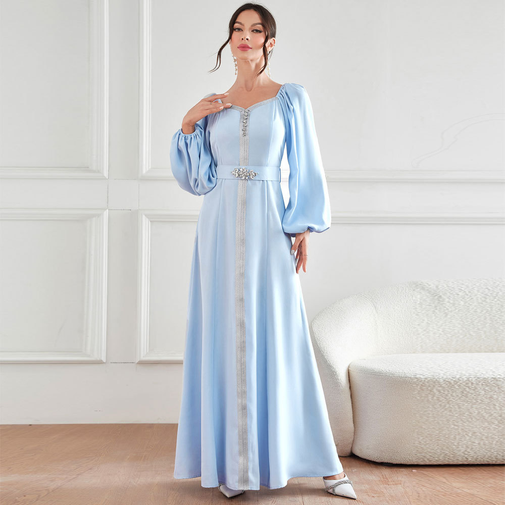 MS352#Bata de diamantes con diseño de uñas y cintura alta para mujer de moda musulmana