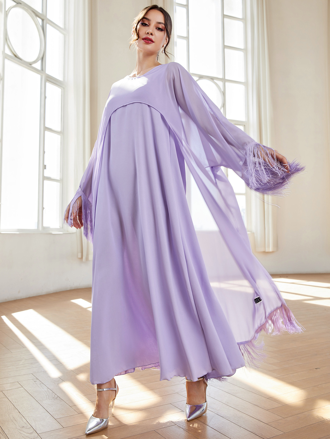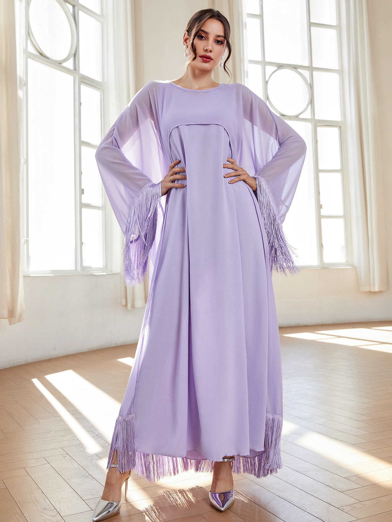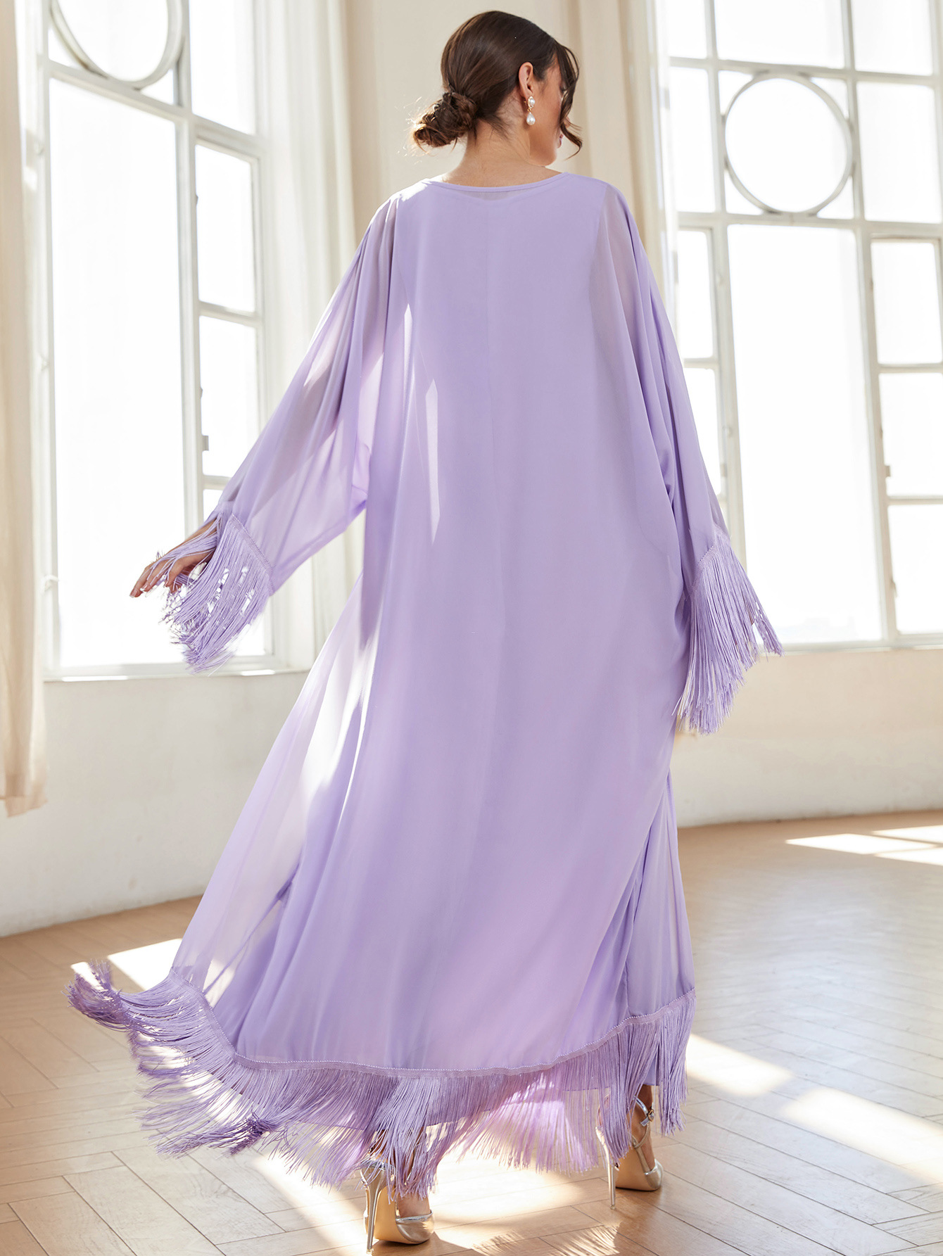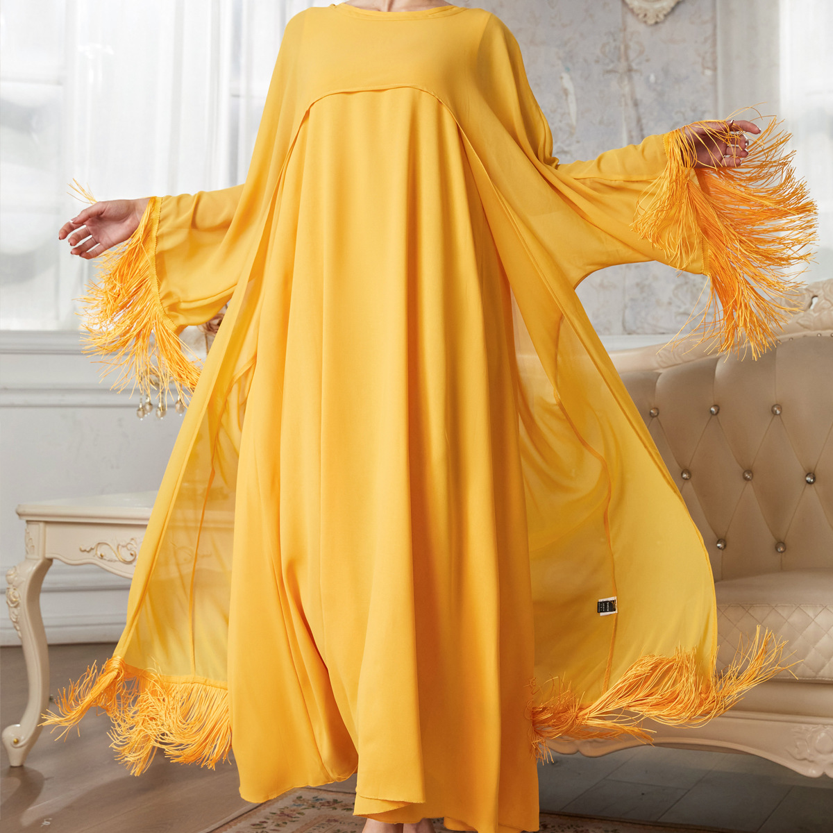 MS354#Conjunto elegante de dos piezas de bata de gasa y borlas