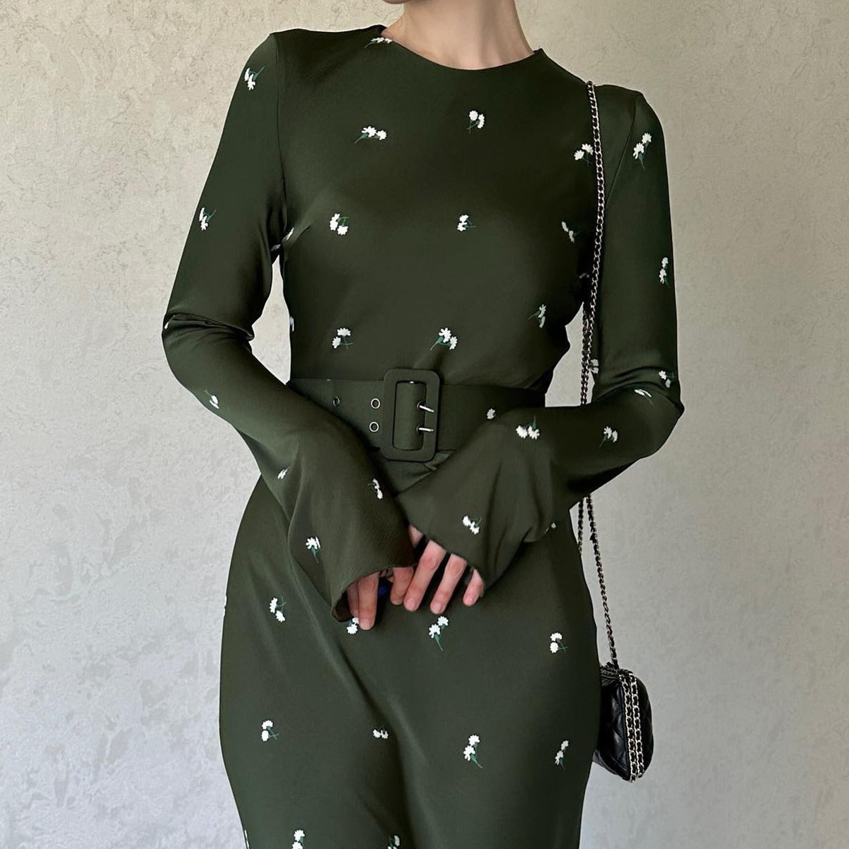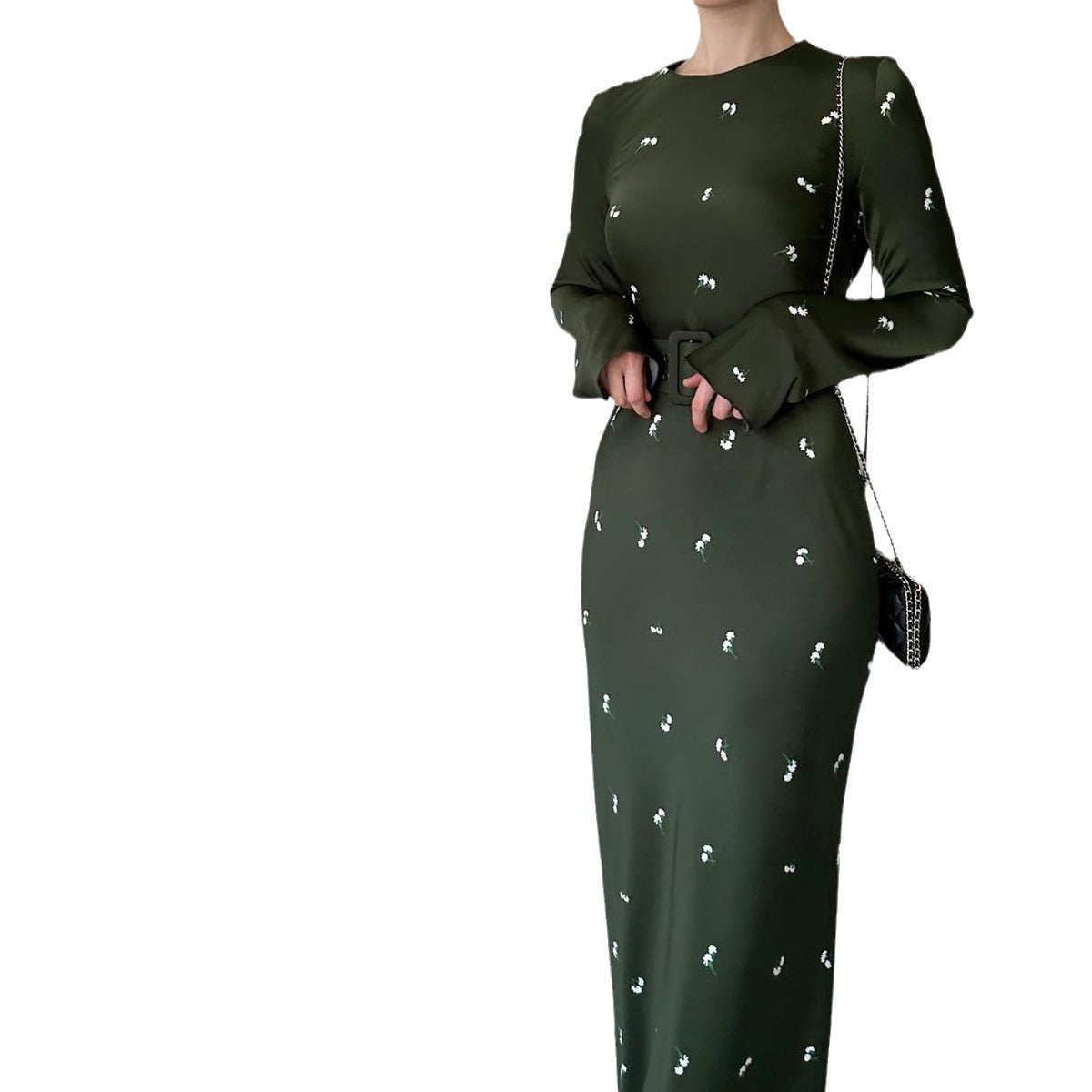 MS413#Vestido ajustado con volantes y manga larga de temperamento moderno