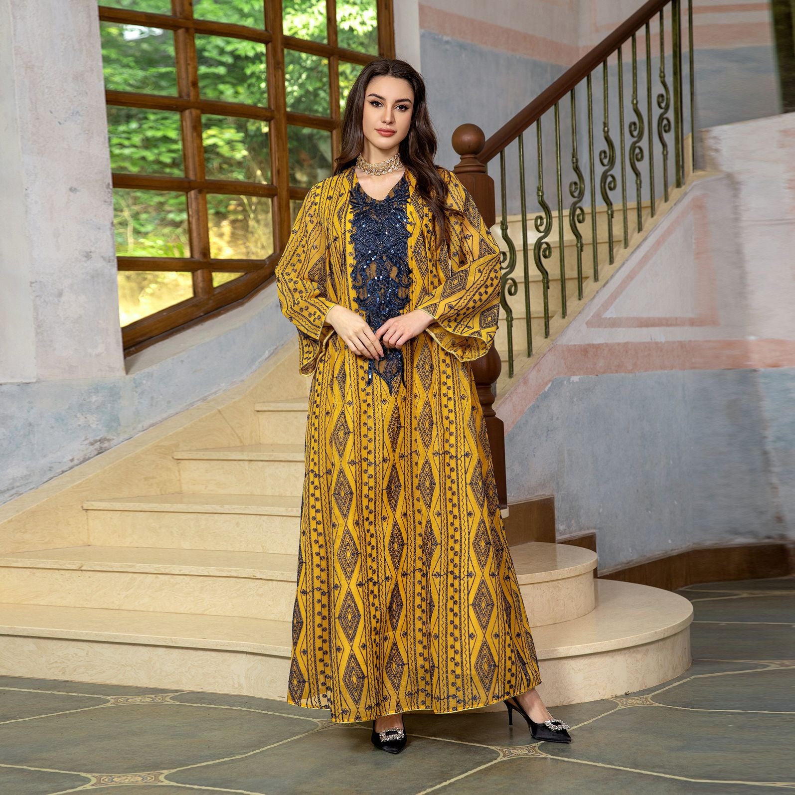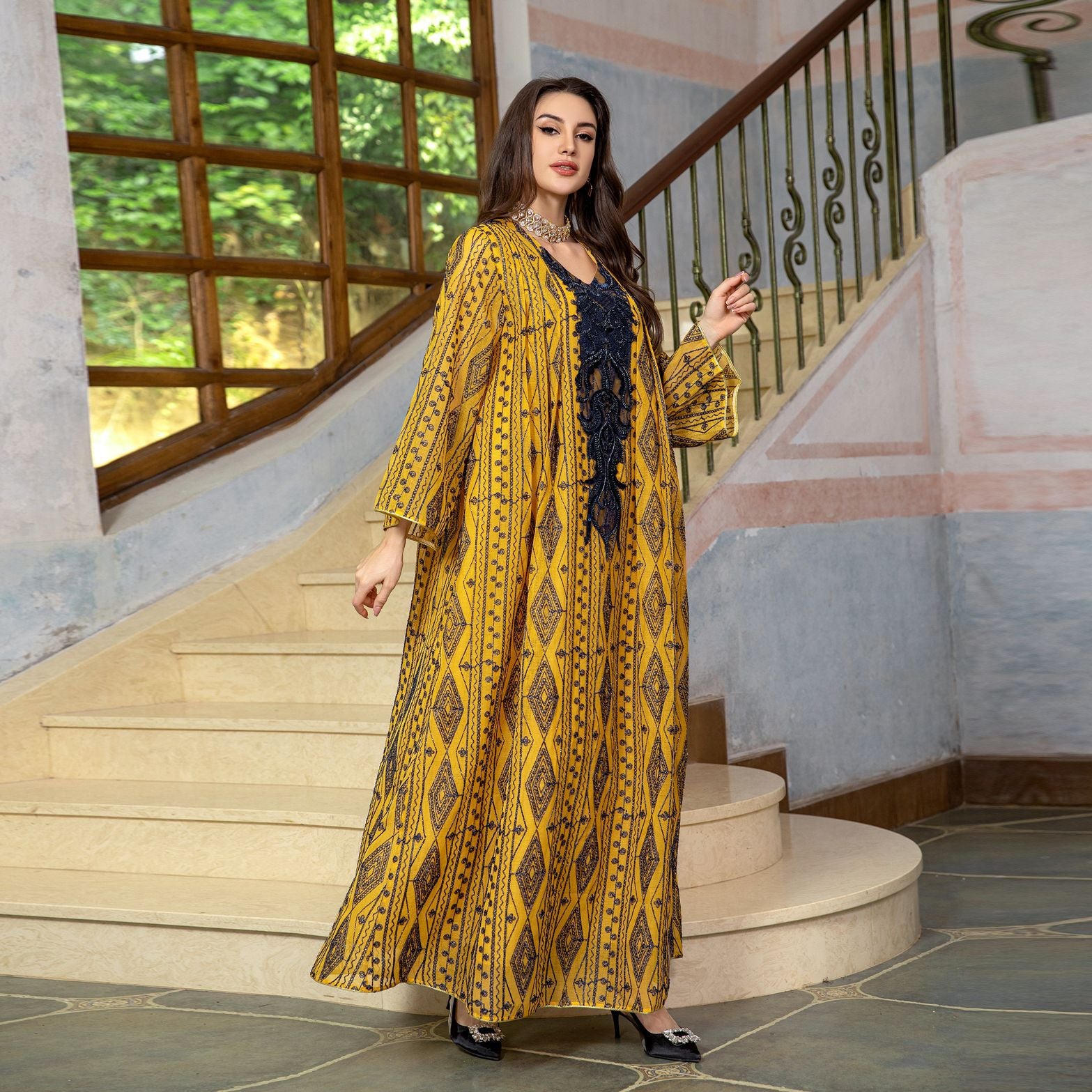 MS421# Túnica suelta con costura musulmana y bordado de cuentas