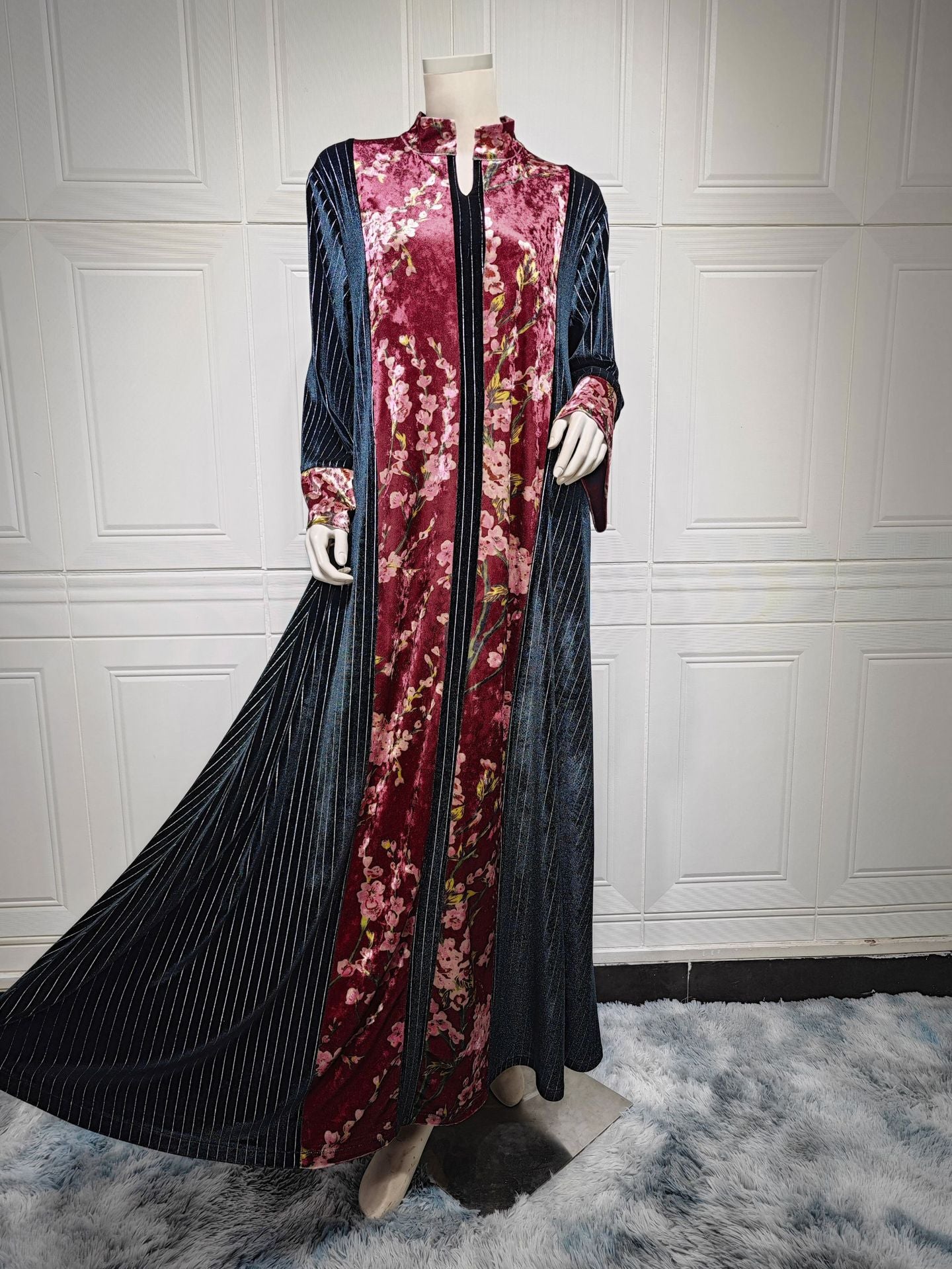 MS433#Batas de mujer musulmanas de moda con temperamento jacquard de terciopelo dorado