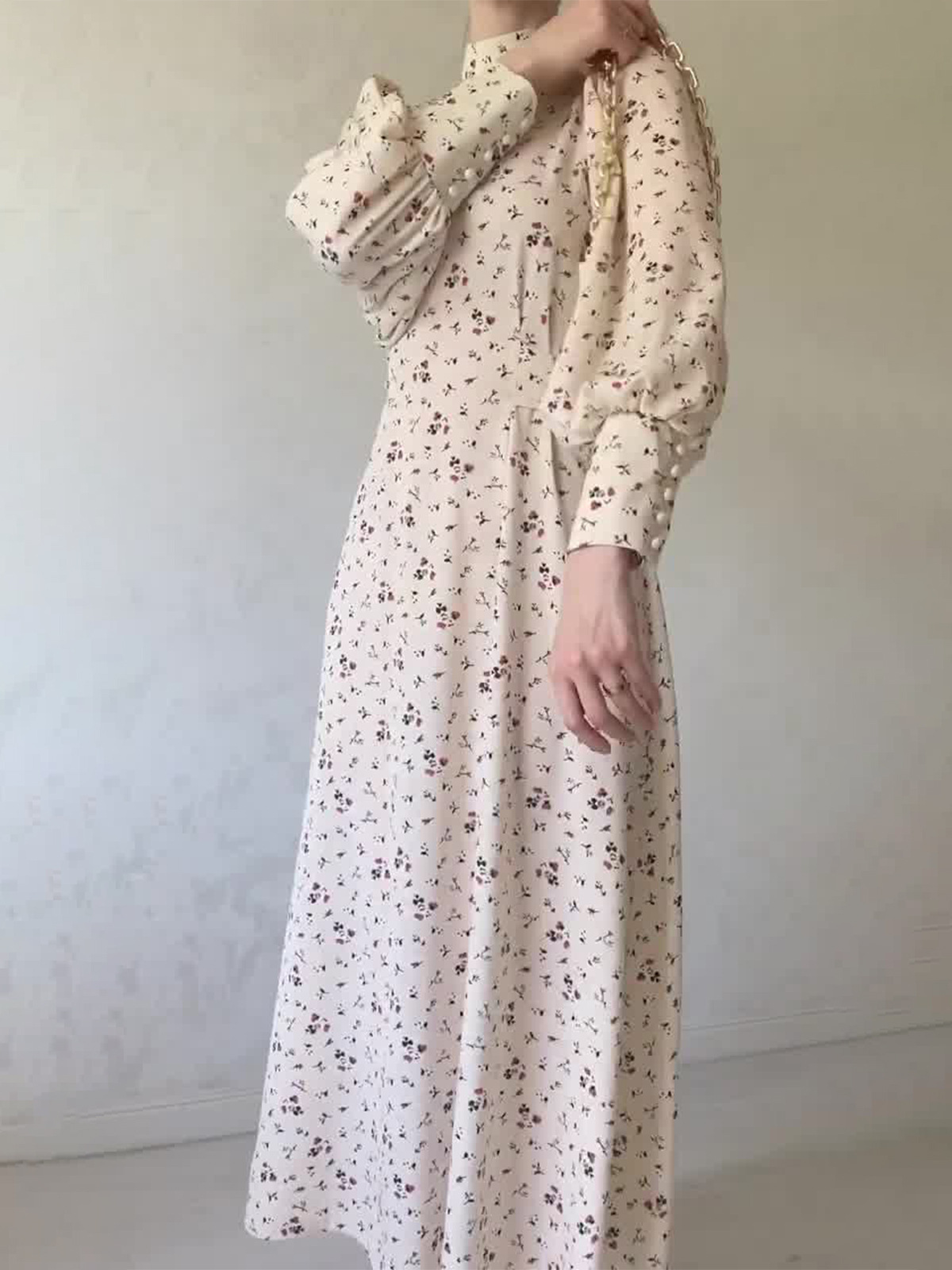 MS453#Vestido suelto con cordones y flores de manga larga con viento suave otoñal
