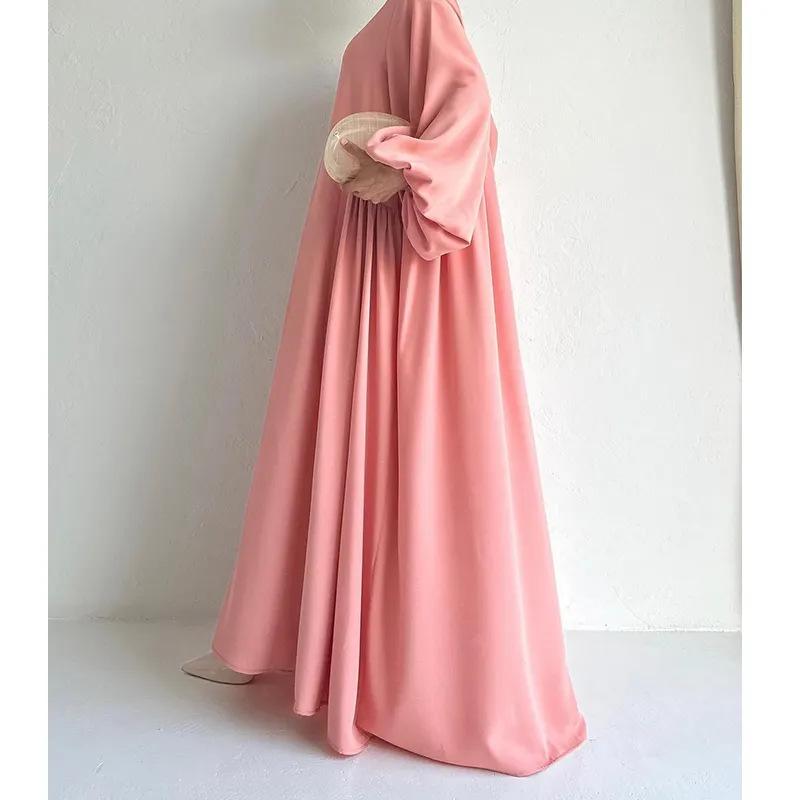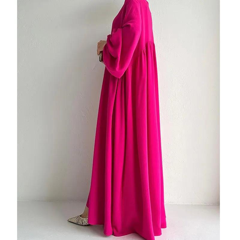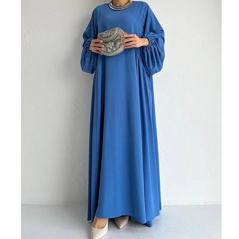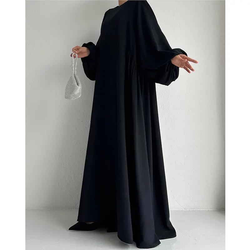 MS467#Vestido musulmán sencillo de color liso para mujer