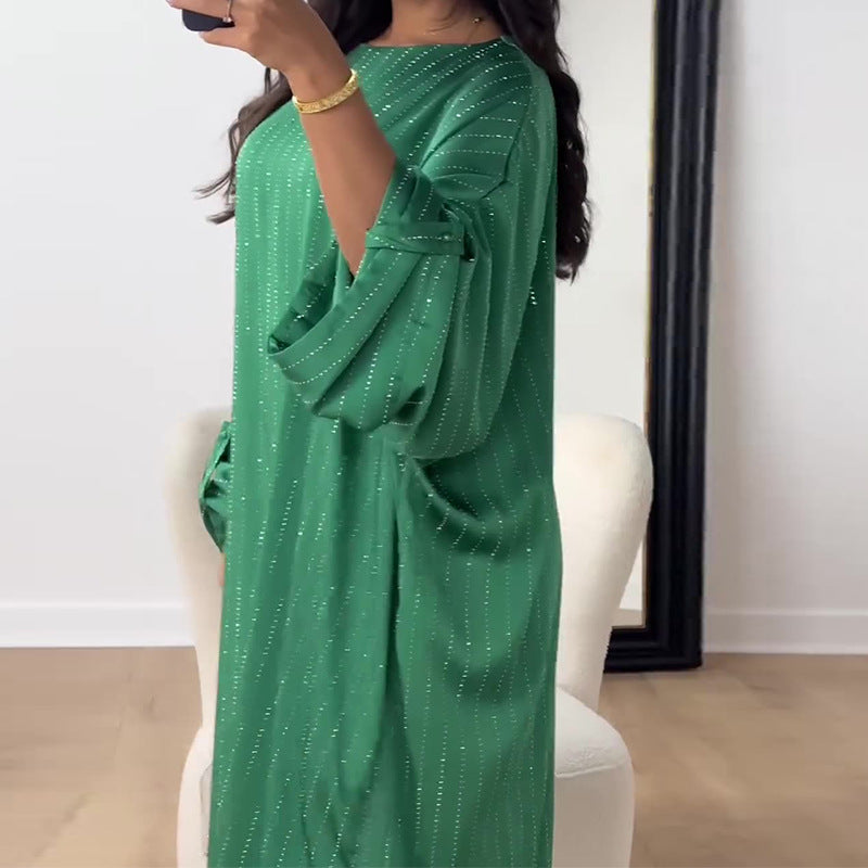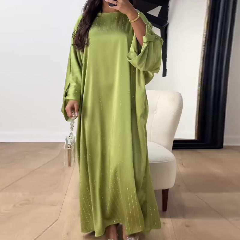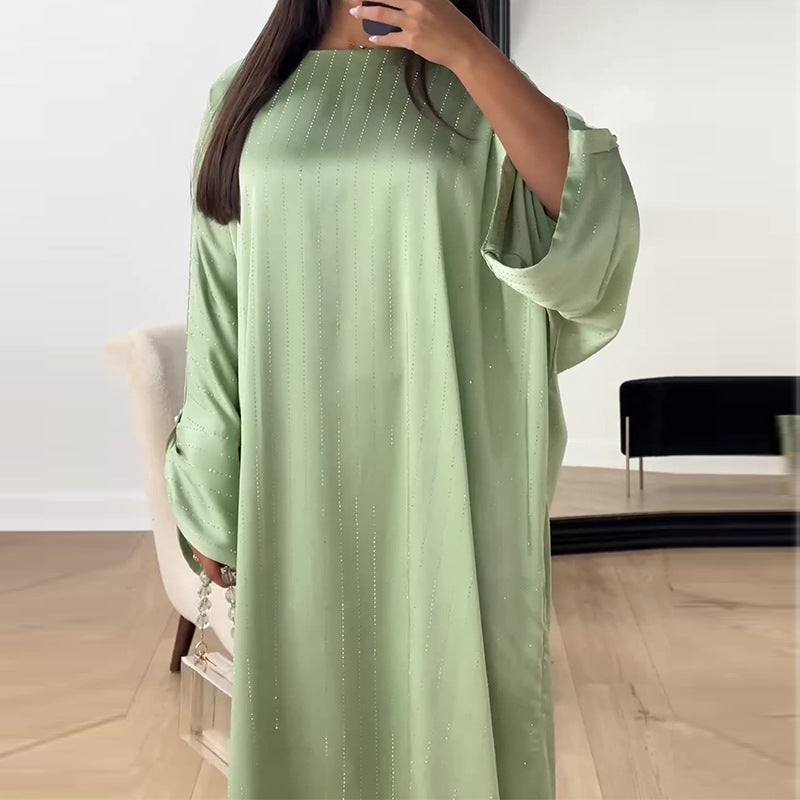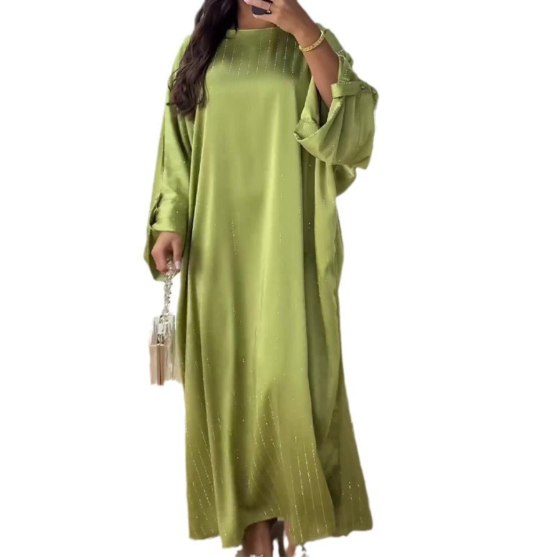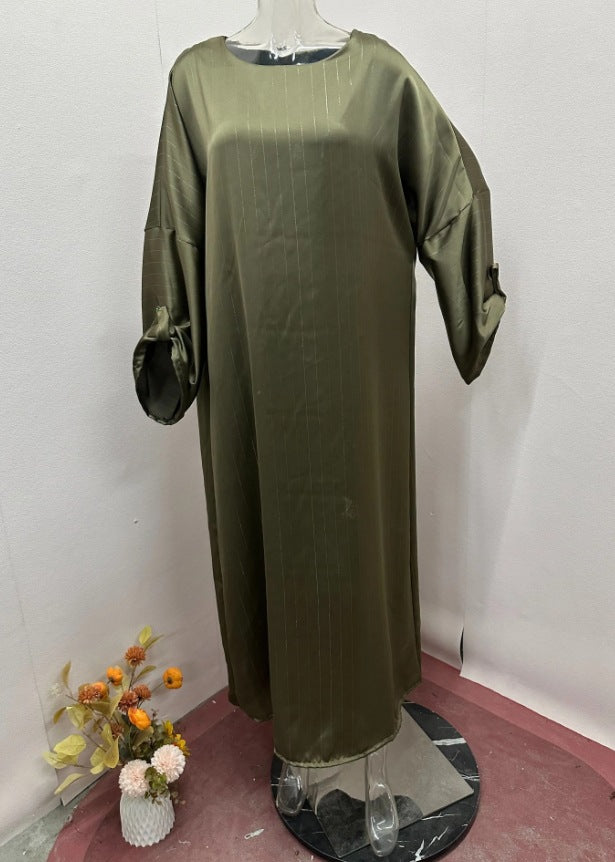 MS590#Falda larga holgada informal de talla grande con cuello redondo y color liso