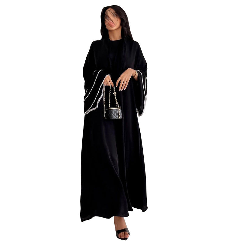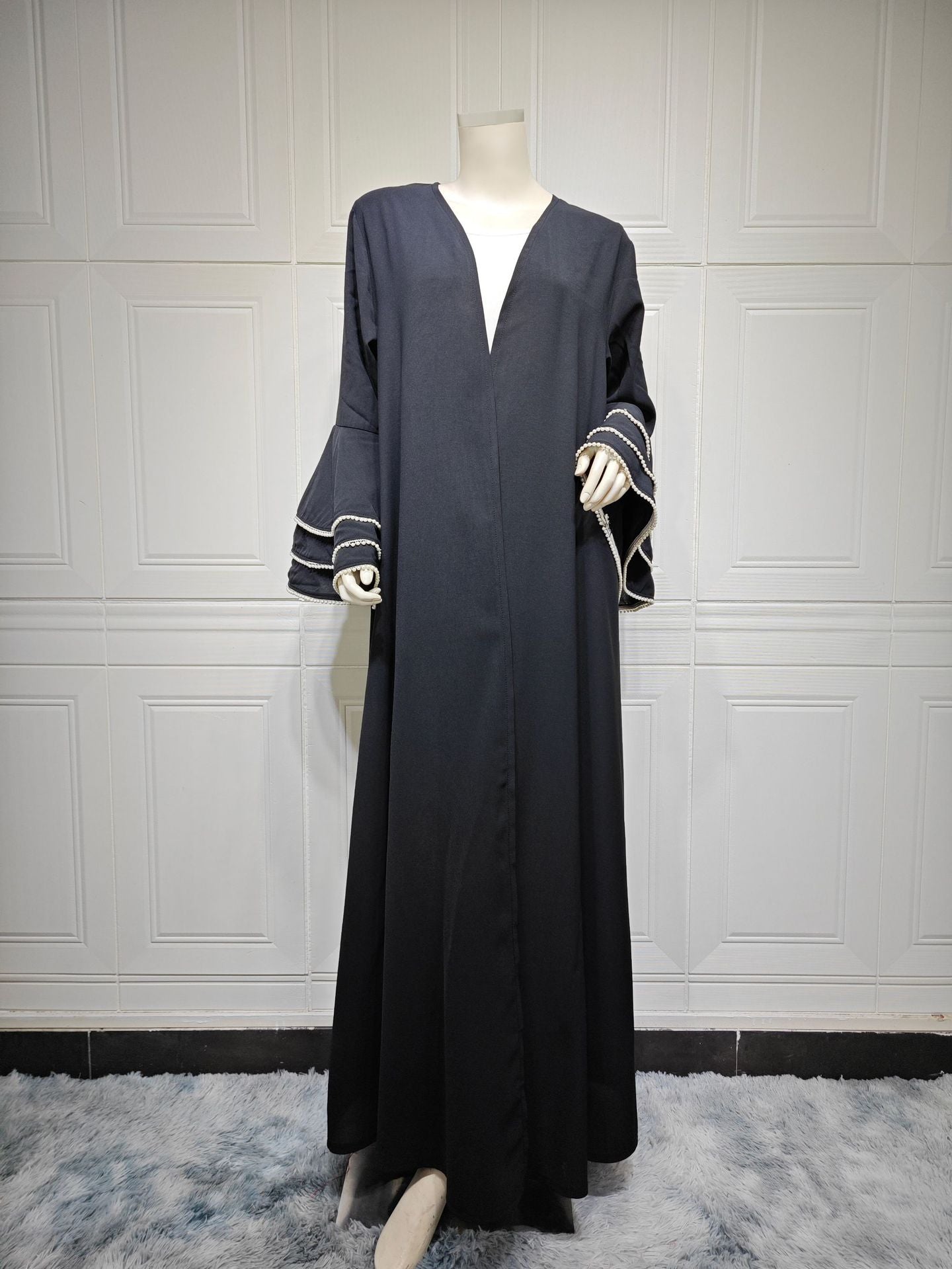 MS594# Puños de bata tipo cárdigan negro con cuentas