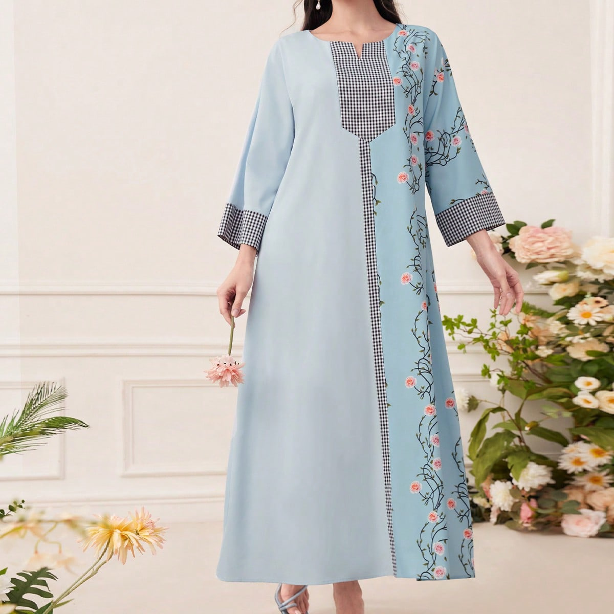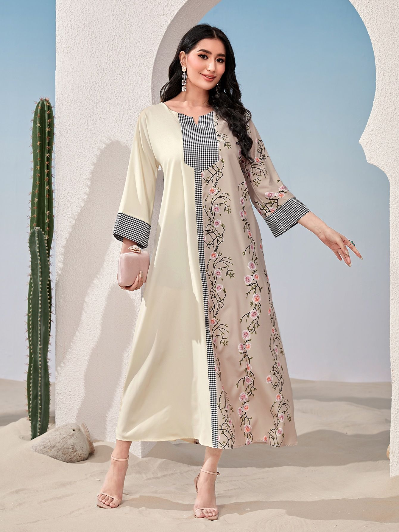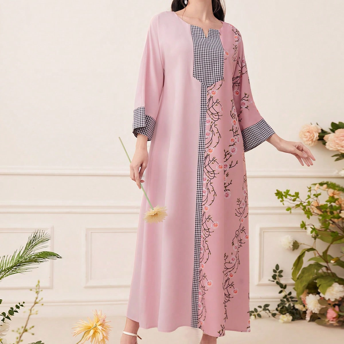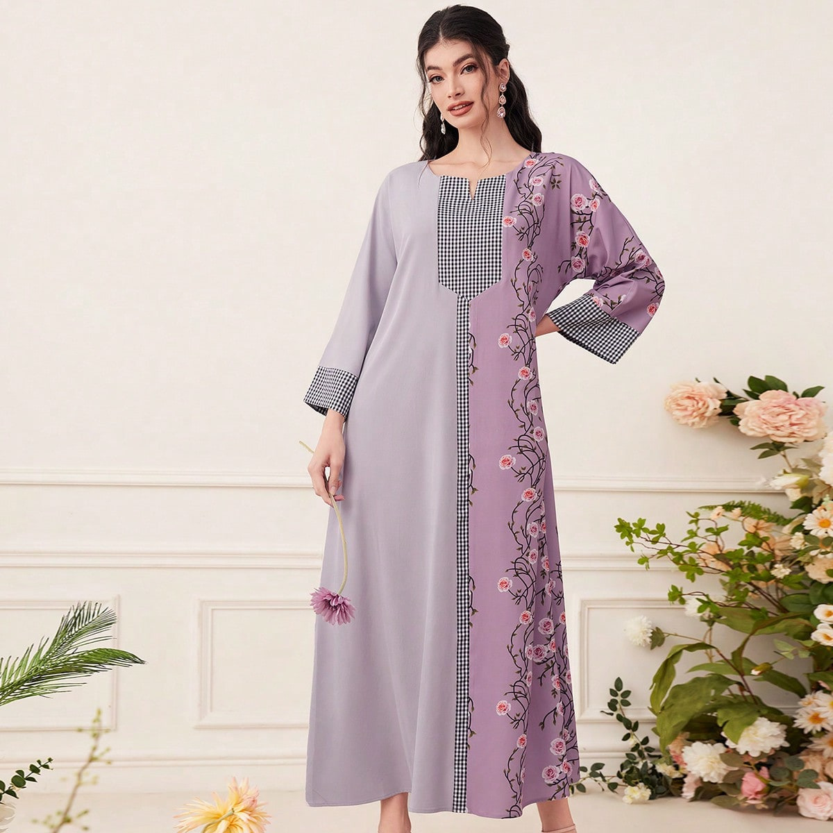 Bata de manga regular con estampado de patchwork y moda musulmana MS353