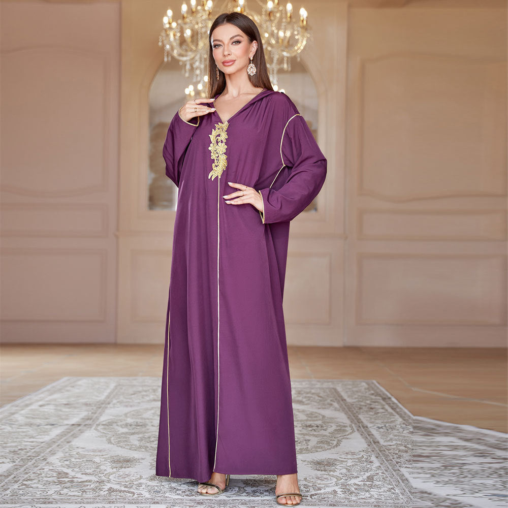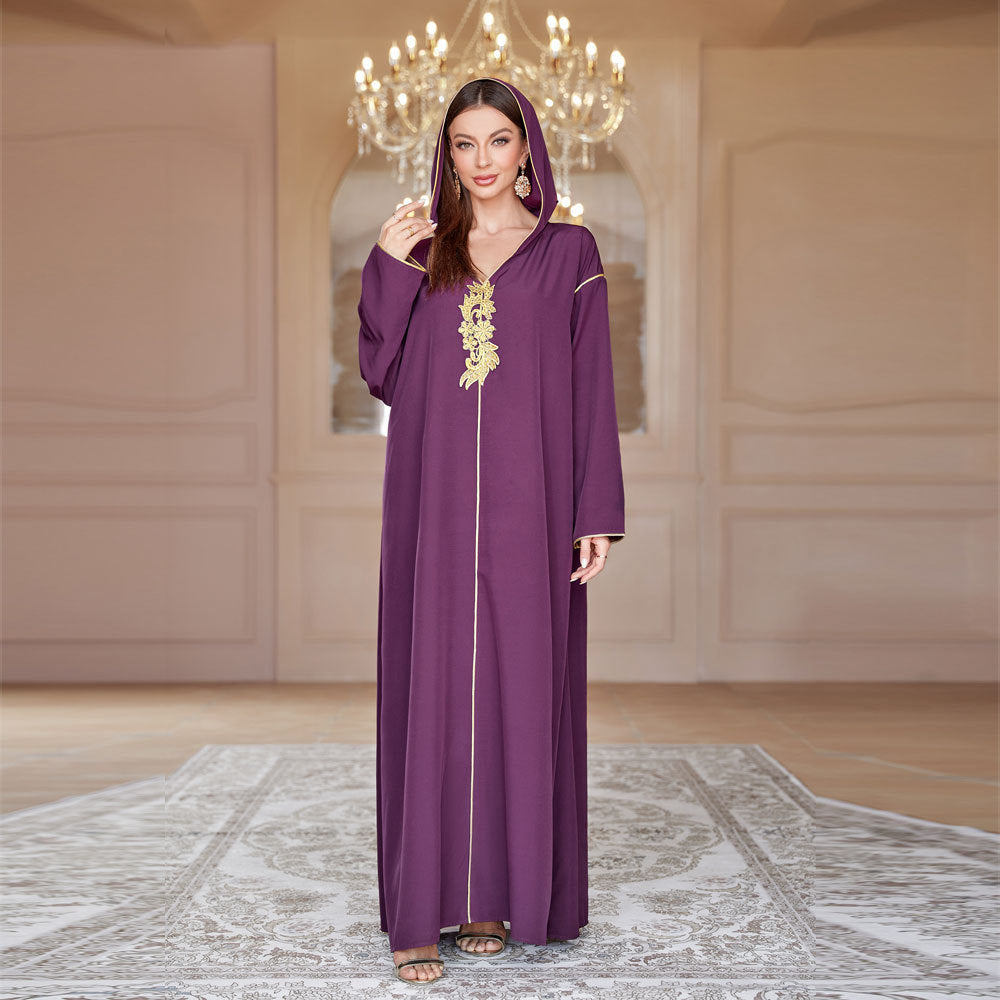 MS514#Vestido abaya musulmán con capucha para mujer de Oriente Medio en stock
