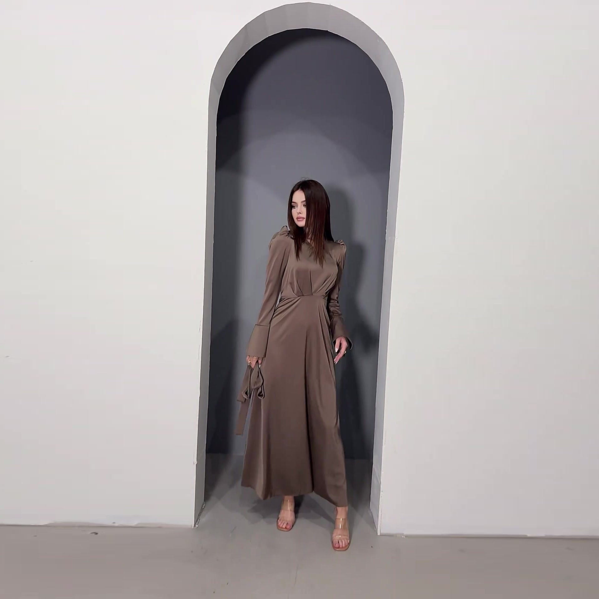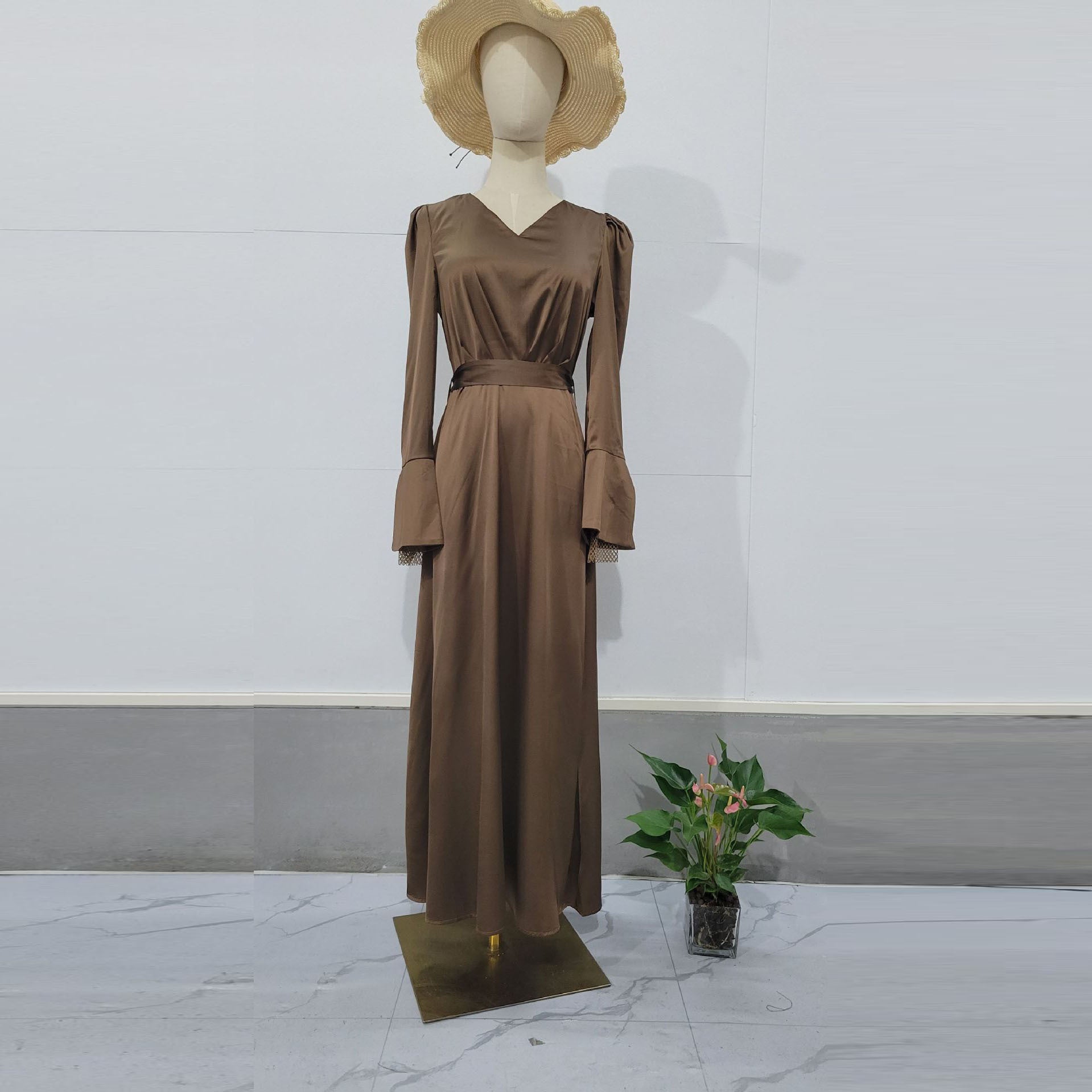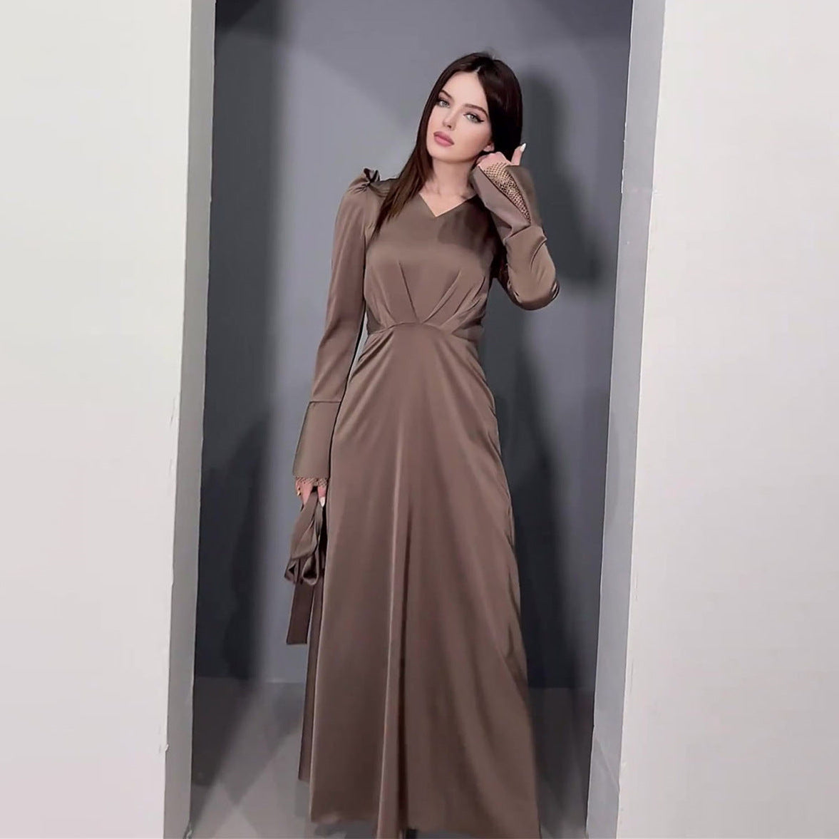 MS472#Vestido ajustado de corte A con mangas abullonadas y temperamento, falda larga