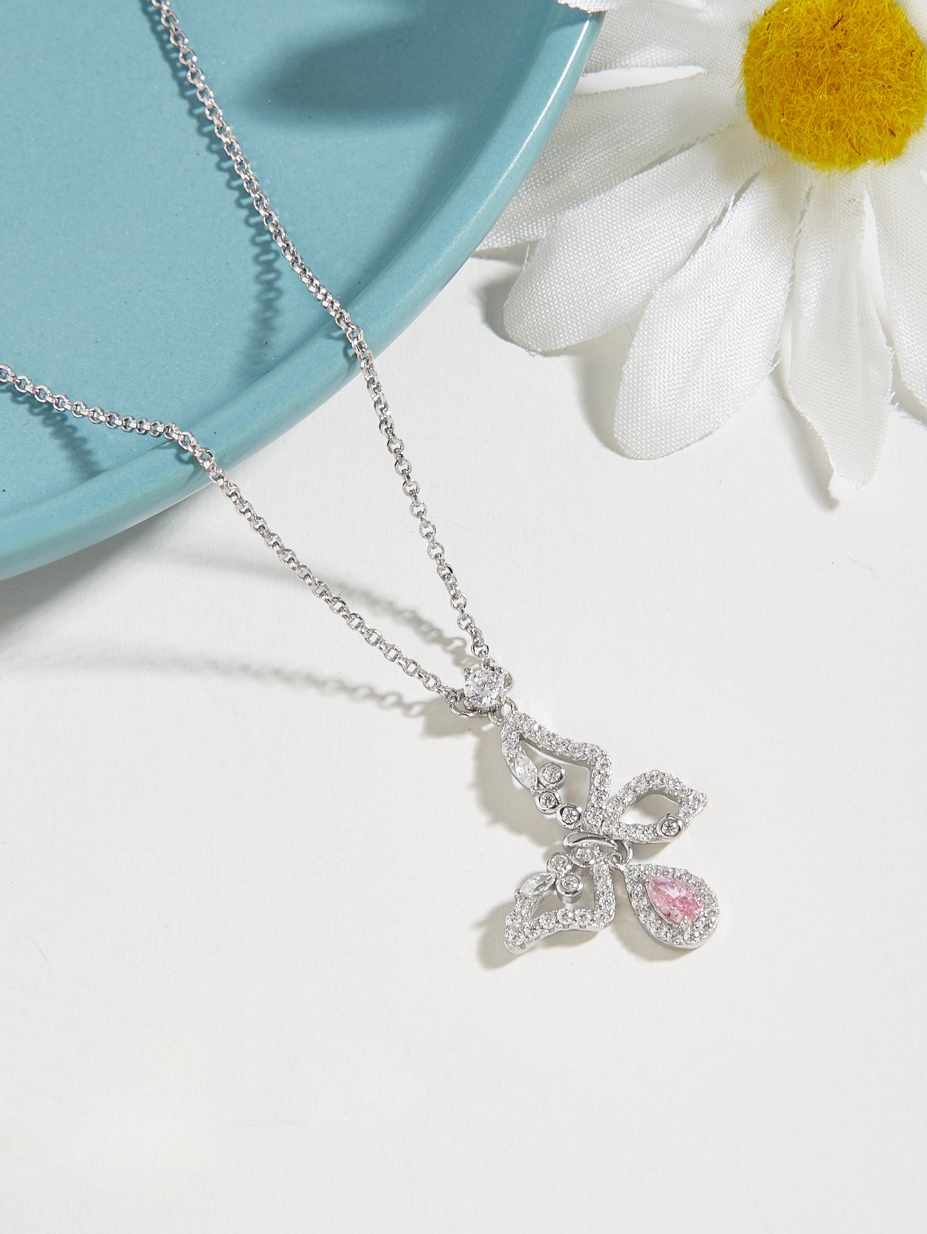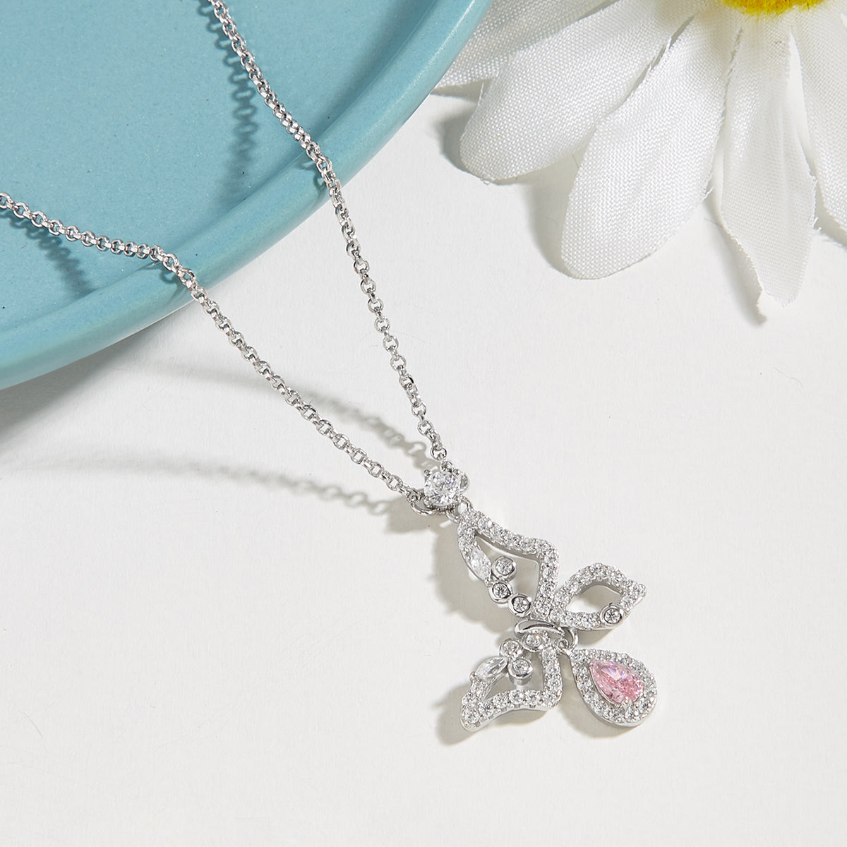 Collar de plata YNM020#925 con colgante de mariposa de diamante de alto carbono rosa