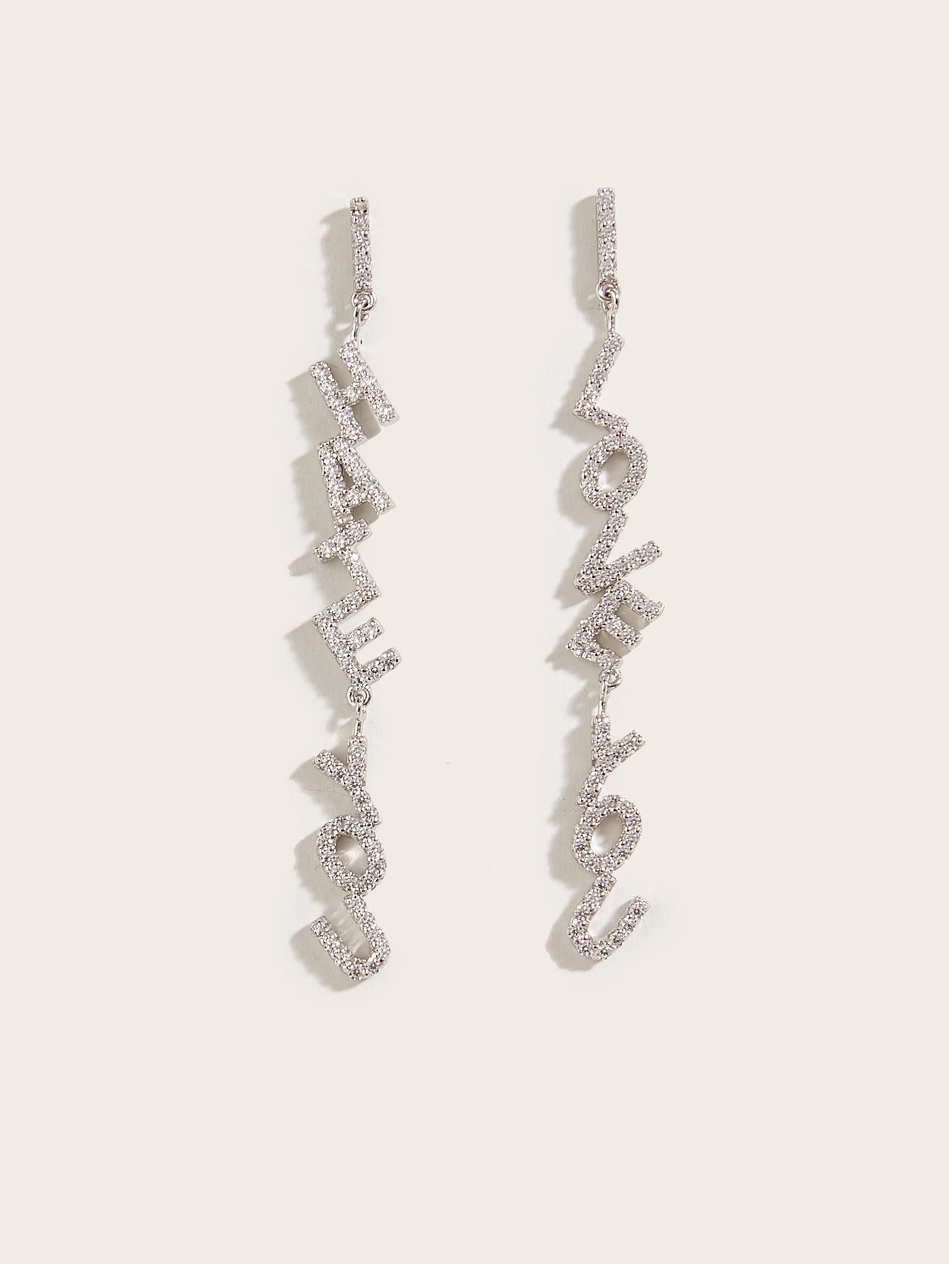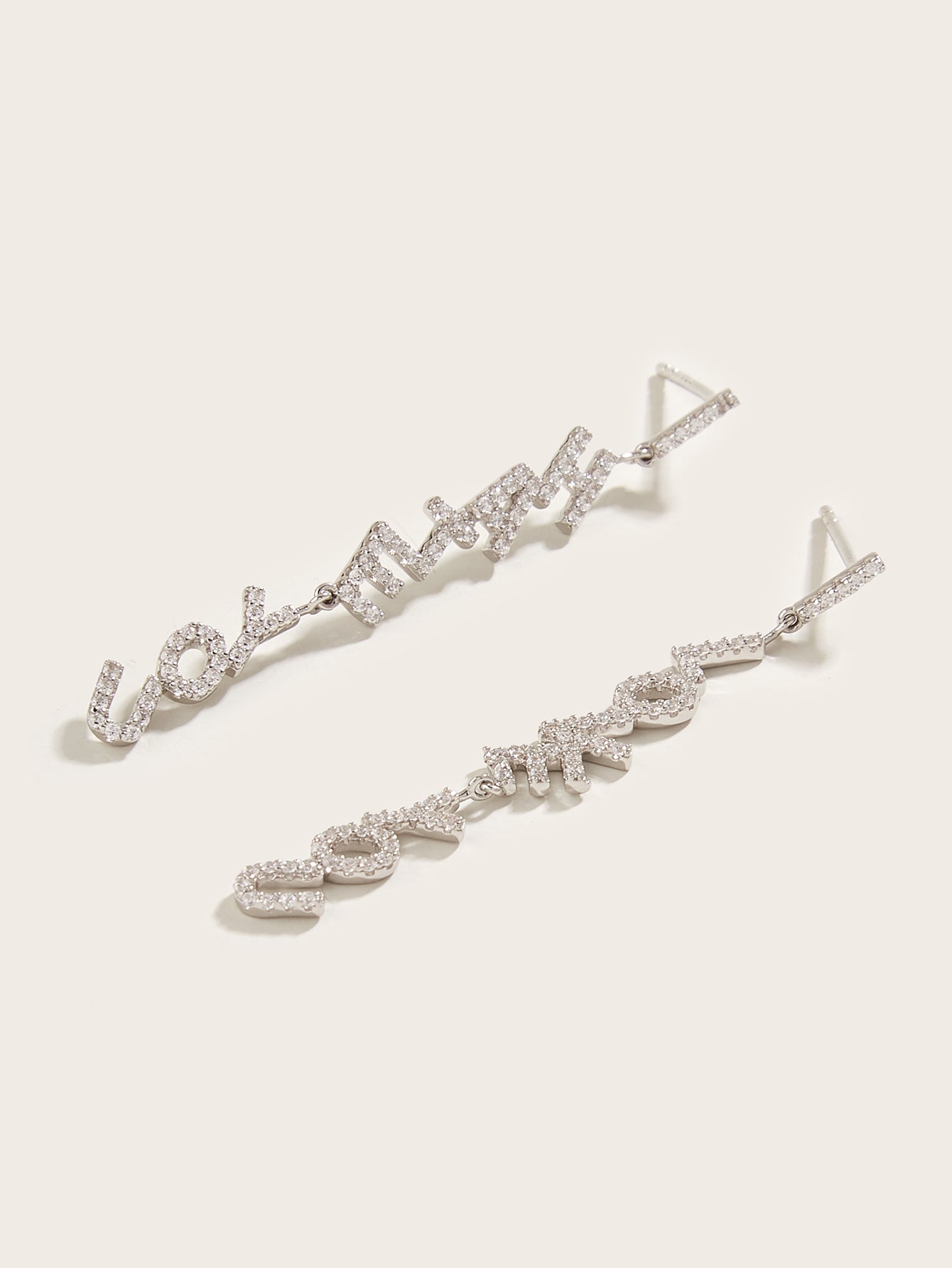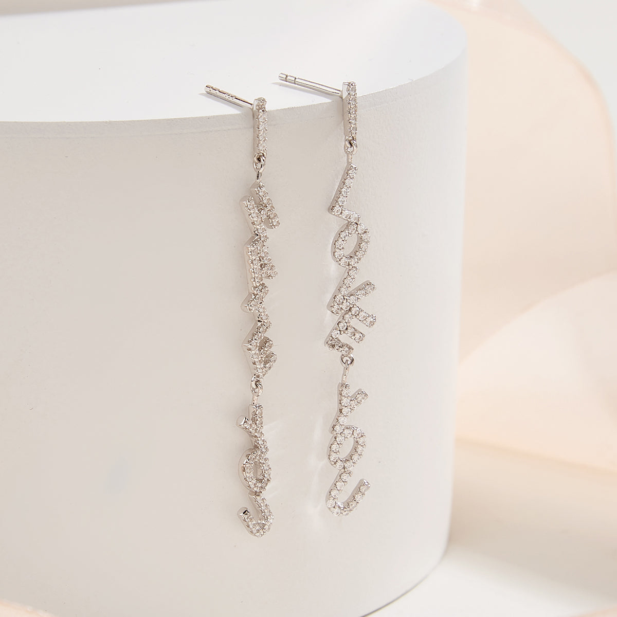 YNM022#Pendientes de plata 925 con colgante de circonita y letra asimétrica